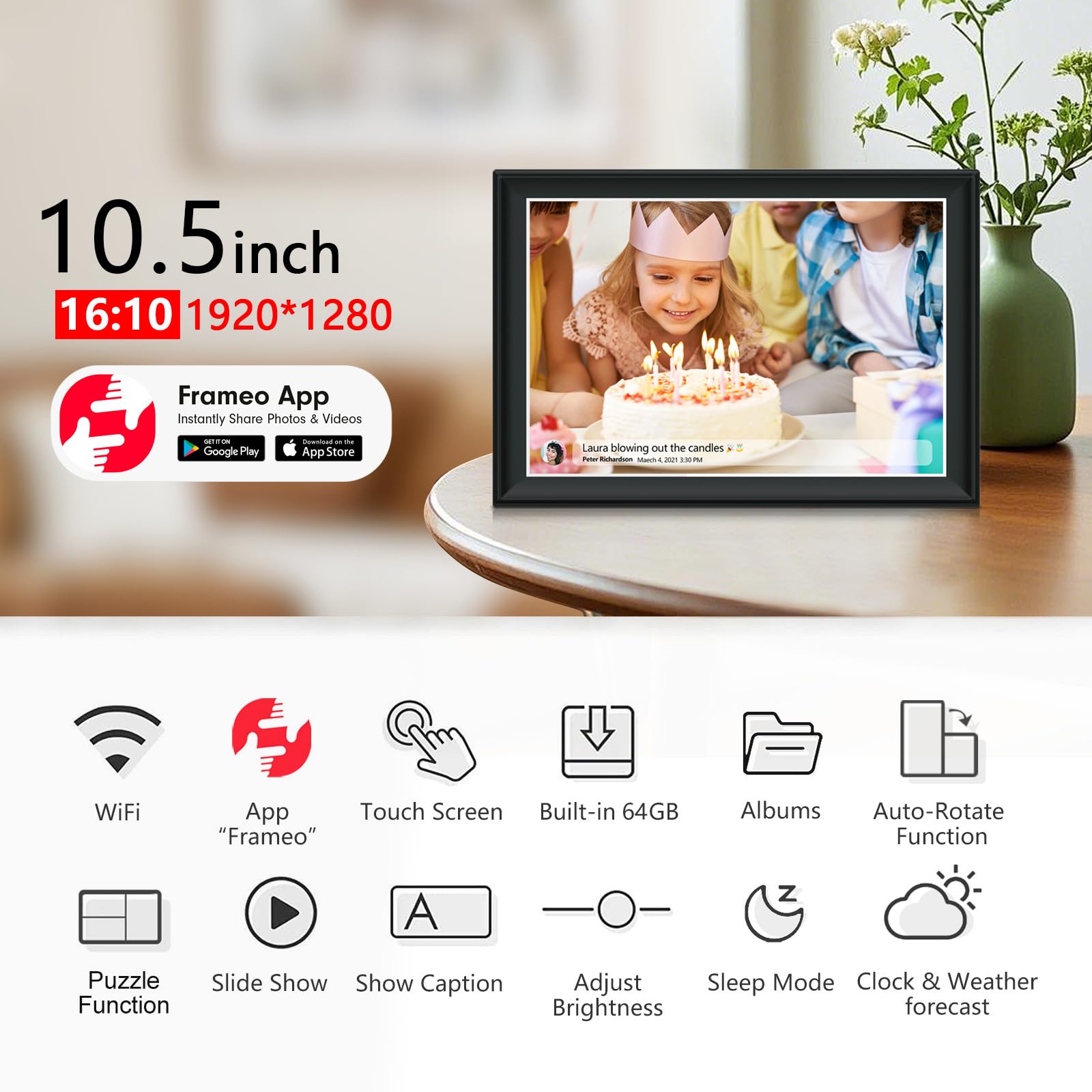 32GB FRAMEO 10.1 Inch Smart WiFi Digital Photo Frame 1280x800 IPS LCD Touch Screen, Auto-Rotate Portrait and Landscape, Built in 32GB Memory, Share Moments Instantly via Frameo App from Anywhere