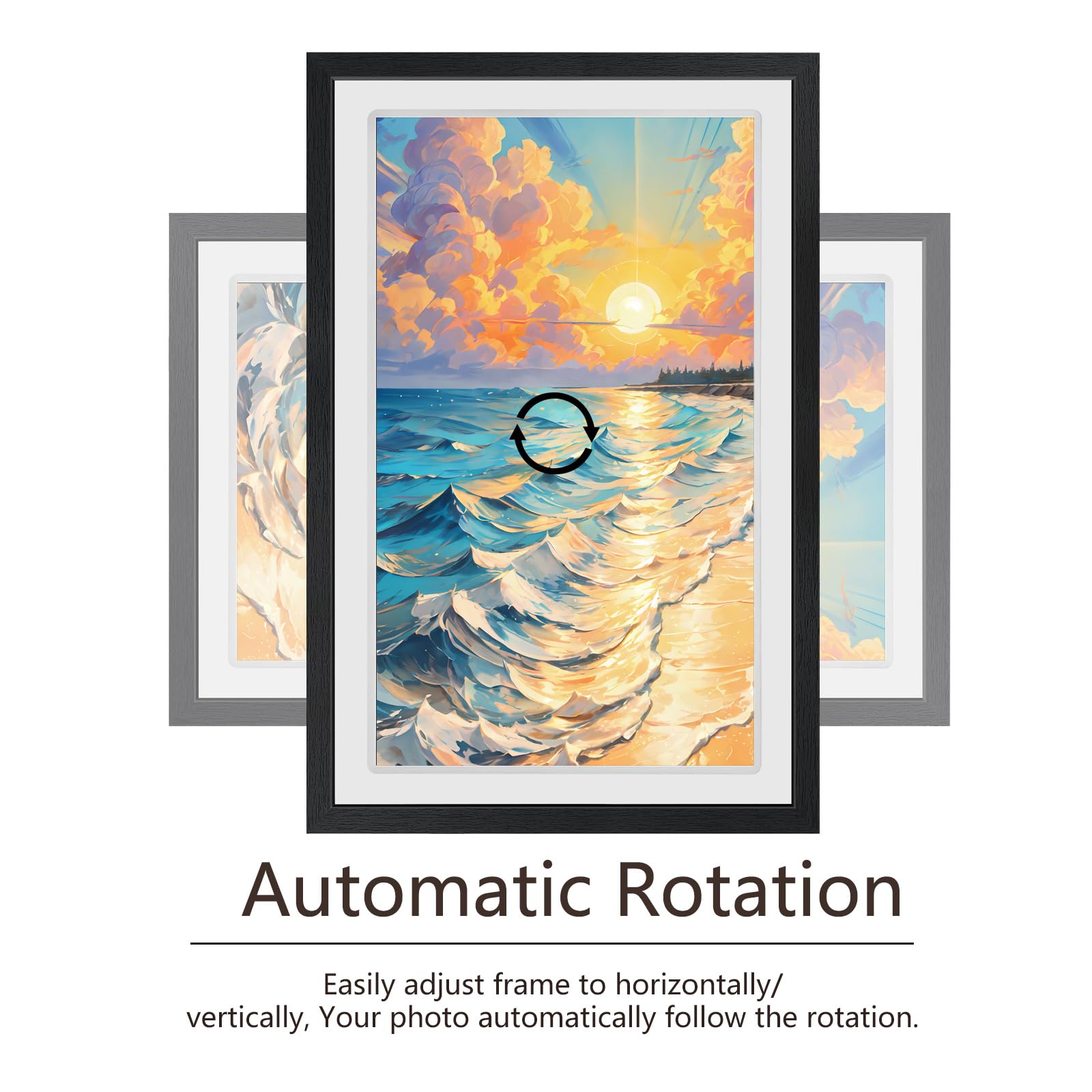 - 【IMPRESSIVE FUNCTIONS】 Akimart WiFi digital picture frame can automatically rotate photos to adjust the direction, Come with a detachable holder as a frame stand, allowing you to view the photos in either portrait or landscape mode. Display caption, weather and clock, you can sett turn on or off. Multifunctional custom settings, such as play order, image zooming, hide/publish images, adjustable brightness, sleep mode, etc.