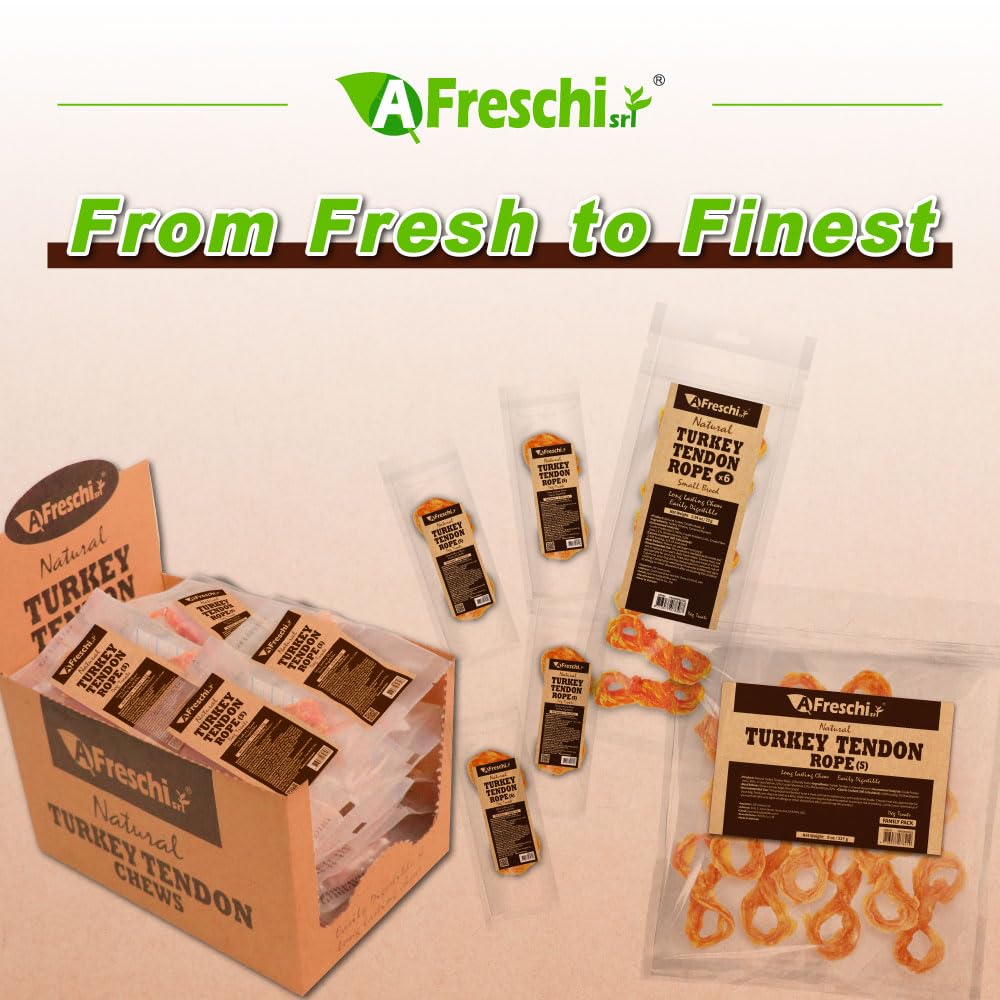 AFreschi Turkey Tendons for Dogs, USA-Sourced, Healthy Dog Treats, Rawhide-Free Puppy Chews, Long Lasting, All Natural, Hypoallergenic Dog Treats for Small Breeds, 3 oz Pack Strips