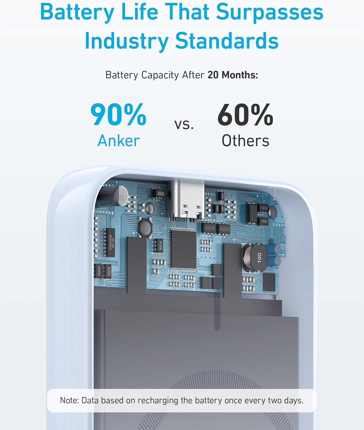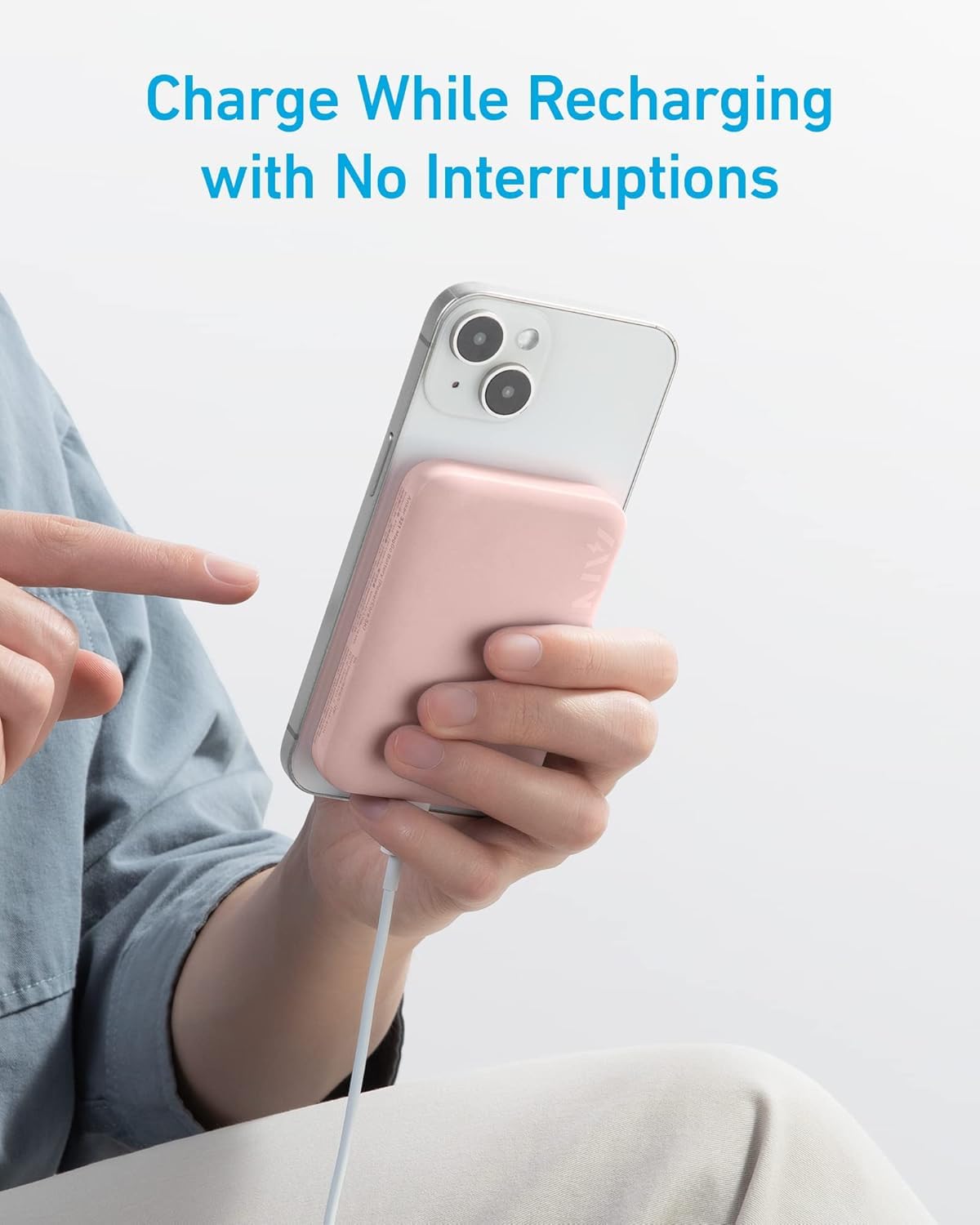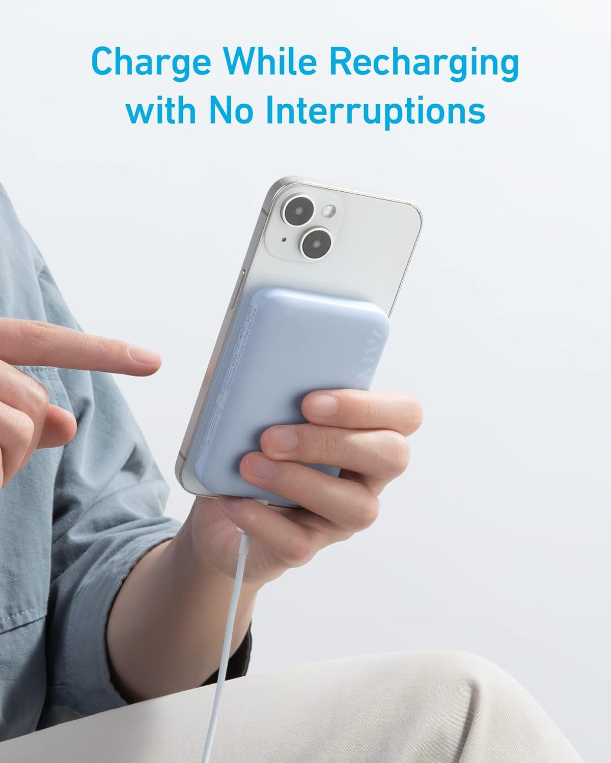 - Charge While Recharging: Seamlessly charge your iPhone while Anker 321 Magnetic Battery is recharging, eliminating the need to wait for the power bank to be fully charged before using it.