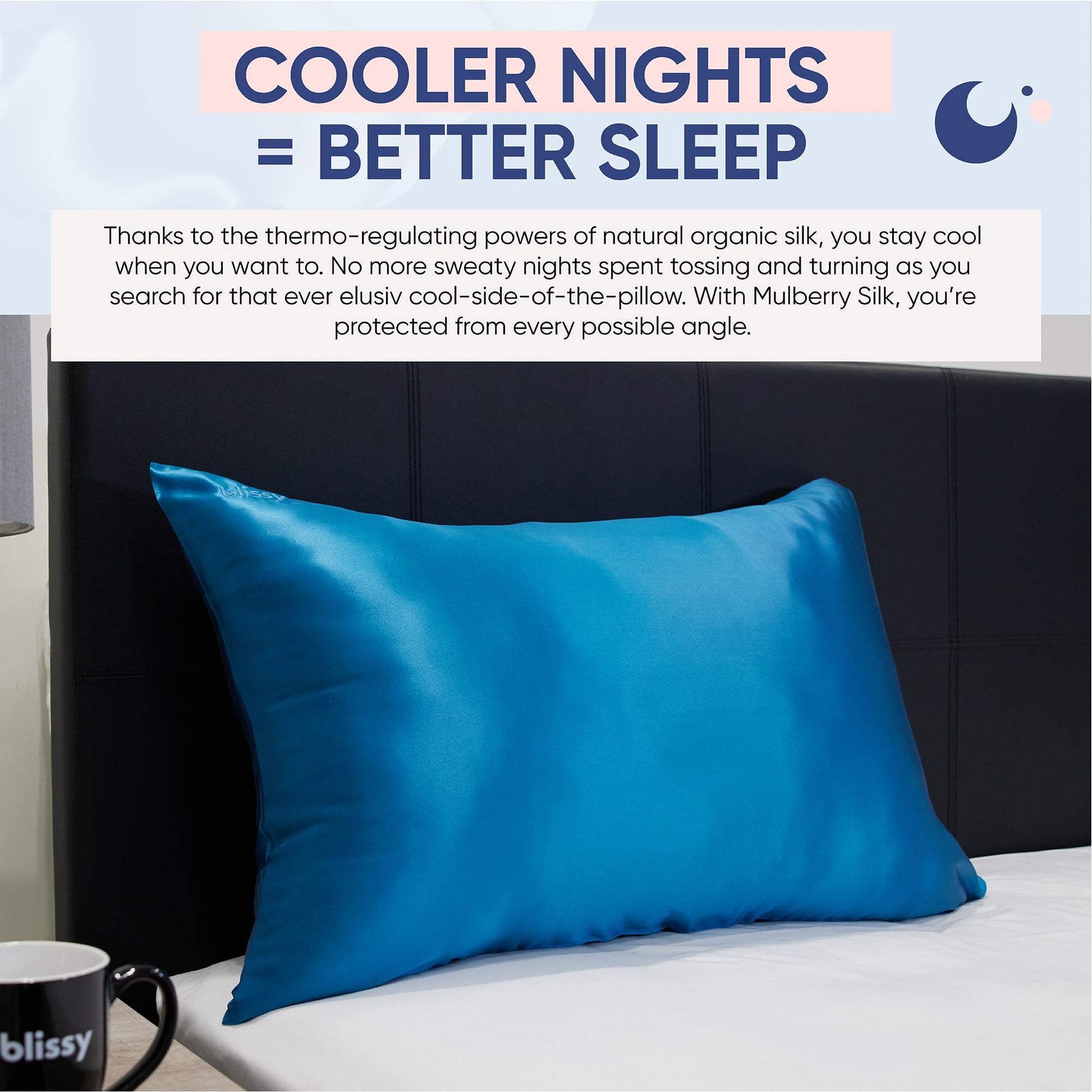 - BETTER & COOLER SLEEP: The temperature regulating properties of the Blissy silk pillowcase allow you to keep cool at all times during the night without the discomfort associated with fluctuating temperature and the constant tossing and turning for a restful night sleep.