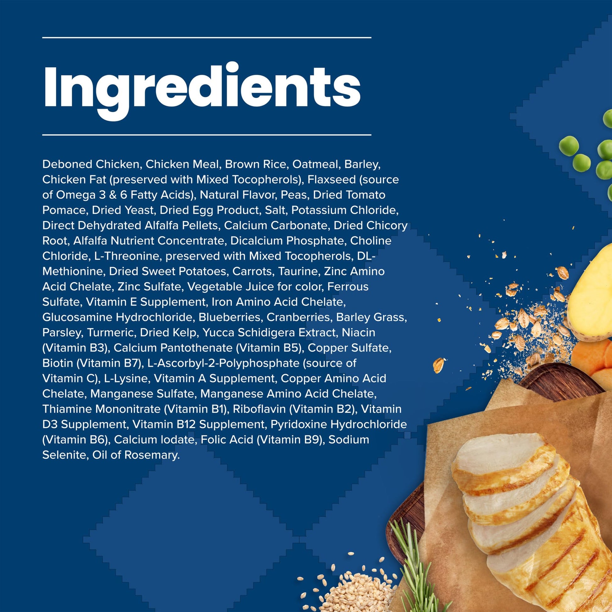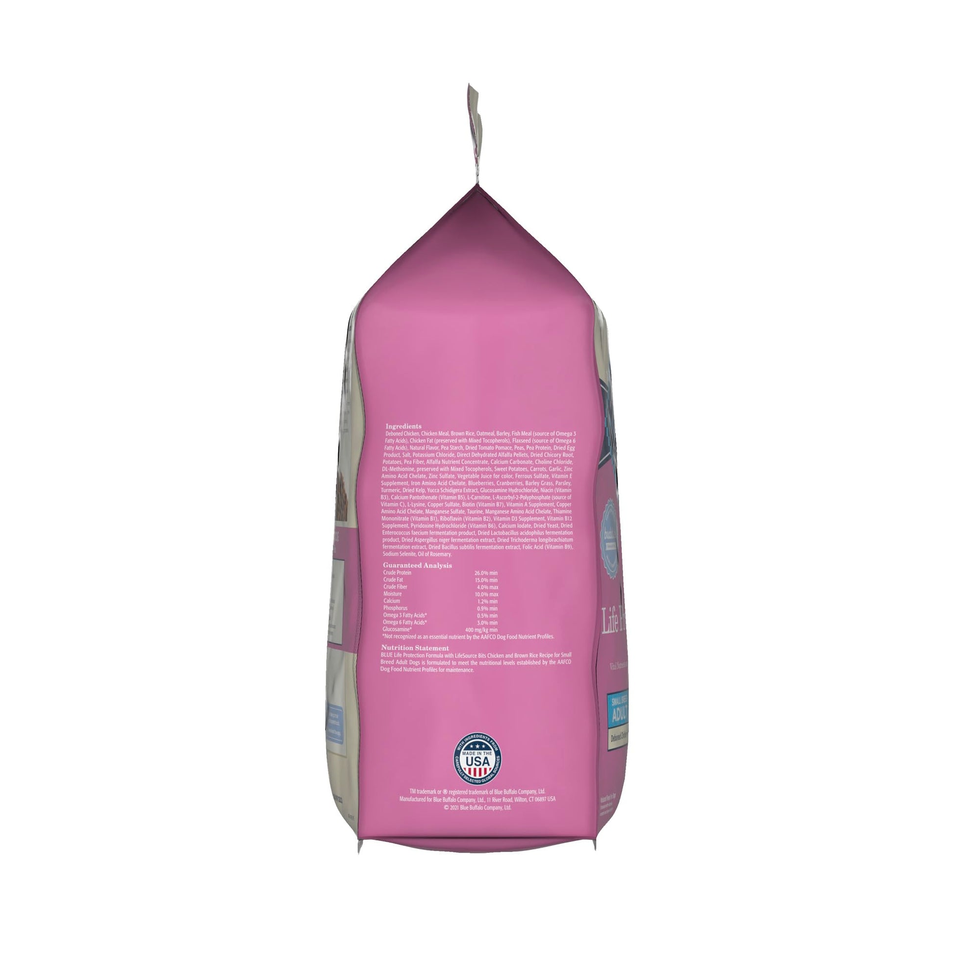 Formulated for the health and well-being of adult dogs, BLUE Life Protection Formula Chicken and Brown Rice Small Breed dry dog food is made with the finest natural ingredients enhanced with vitamins, minerals, and other nutrients. It’s a high-quality, balanced recipe you can both feel great about.With real chicken first, BLUE Life Protection Formula is a delicious, natural choice your dog will love. Formulated specifically for small breed dogs, this diet is made with a precise blend of protein and carbohydrates to support high energy needs.Like all BLUE dry foods, BLUE Life Protection Formula includes exclusive antioxidant-rich LifeSource Bits, which are “cold-formed” to retain their potency.Give your dog the balanced nutrition of BLUE Life Protection Formula today.BLUE Life Protection Formula is brought to you by Blue Buffalo, the leader in natural pet food. Blue Buffalo makes premium-quality pet foods featuring real meat, fruit, and vegetables. Love them like family. Feed them like family.