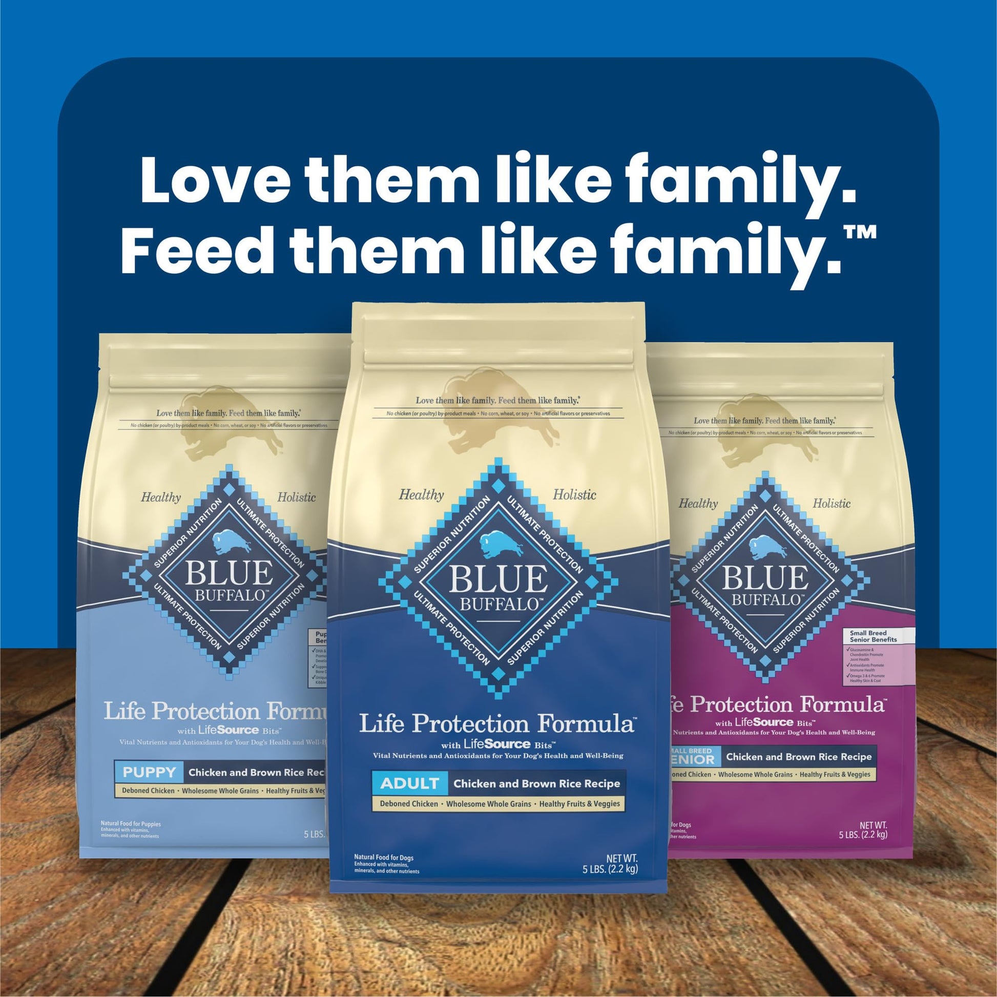 - Contains one (1) 5 lb. Bag of BLUE Life Protection Formula Small Breed Adult Dry Dog Food, Chicken and Brown Rice