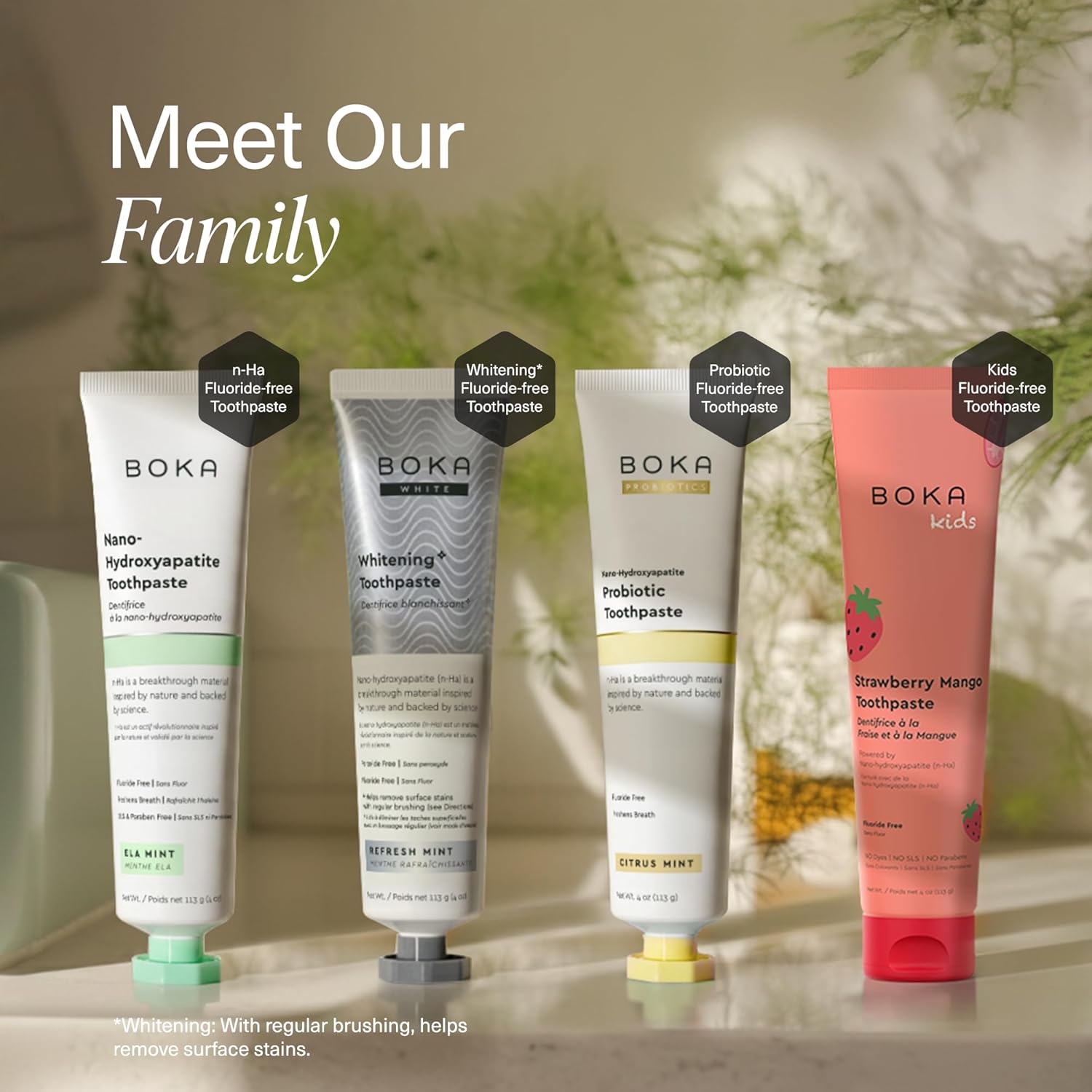 Boka Fluoride Free Toothpaste, Nano Hydroxyapatite Toothpaste, Appropriate for Sensitive Teeth - for Adult, Kids Oral Care - Ela Mint Flavor, 4 Fl Oz 1Pk US Manufactured