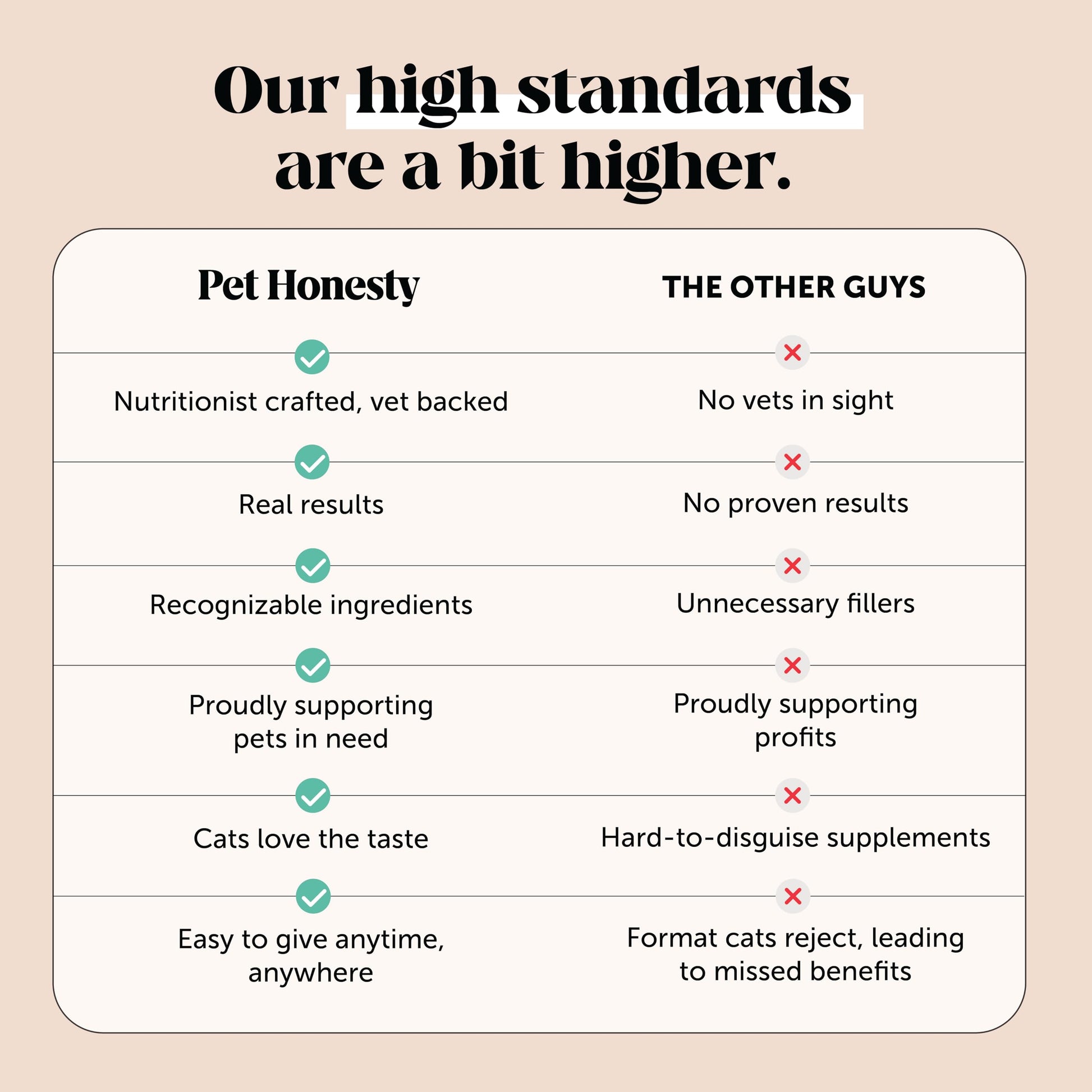 - THE HONEST DIFFERENCE: Our products are made with clean, science-backed ingredients for results you can trust, & with no fillers, artificial preservatives, colors, or flavors, you'll have no doubt your cat is getting the best. Proudly supporting pets in need nationwide & using recycled plastic in our packaging, there's also no doubt that we're committed to doing our best. -- All products are manufactured in the U.S.A. | NASC Member Company