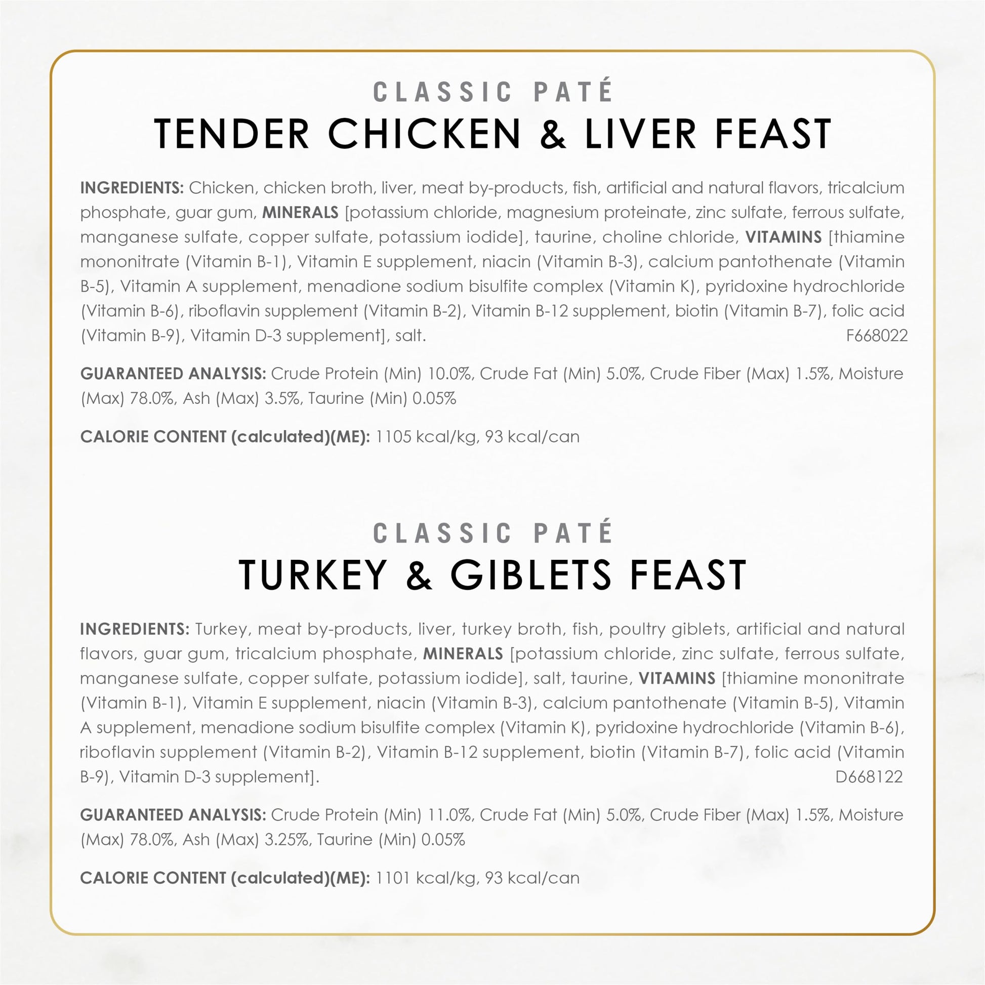 - Canned cat food variety pack crafted with real chicken, turkey or beef as the number one ingredient with a smooth cat food wet pate texture