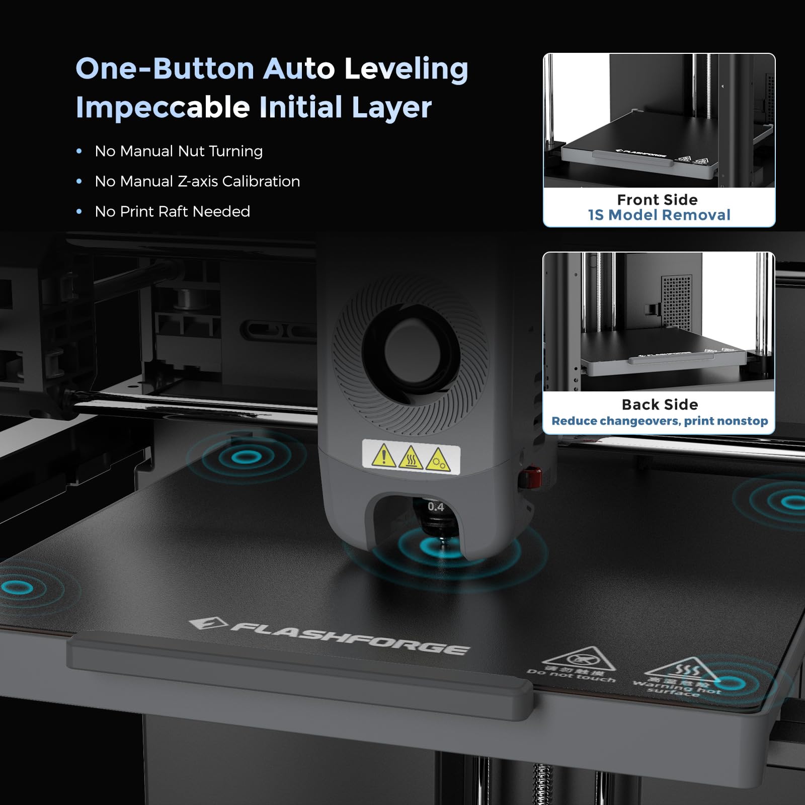 - Smart Convenience and Innovative Experience: Adventurer 5M Pro employs pressure sensing for automatic bed leveling. It detects platform height with multi-point precision, ensuring flawless initial layers. No manual adjustments, no Z-axis calibration, and no print raft needed. Plus, the dual-sided PEI platform enables easy tool-less model removal.