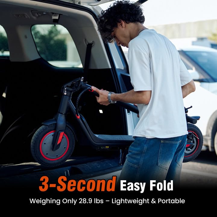 - Portable & Foldable for Everyday Use: Fold your scooter in just 3 seconds. Weighing only 27.7 lbs, it’s lightweight enough to carry up stairs or store in your car trunk—ideal for multi-mode commuting