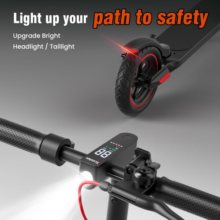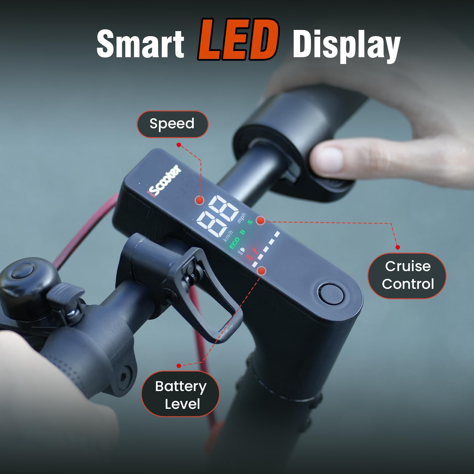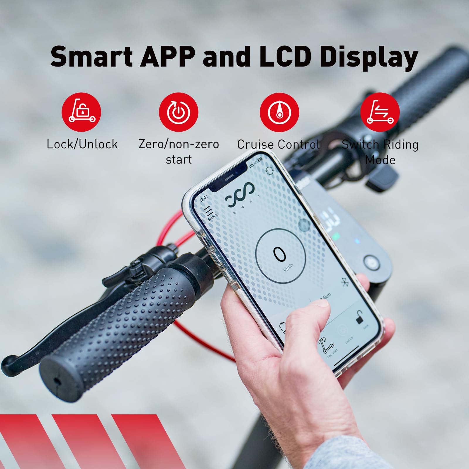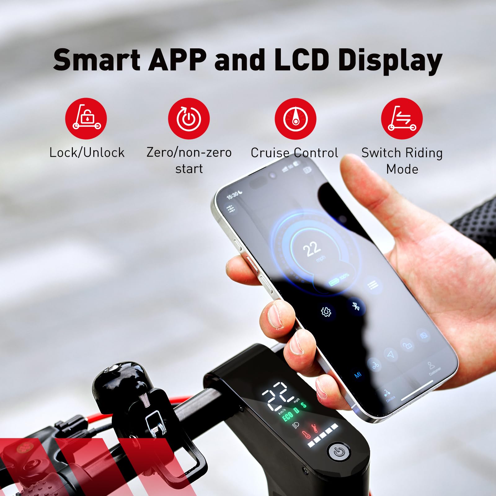 - Smart App & LED Display: Stay in control with the iScooter App. Monitor speed, battery, and ride mode in real-time through the sleek LED display. Adjust settings and lock your scooter with one tap on your smartphone