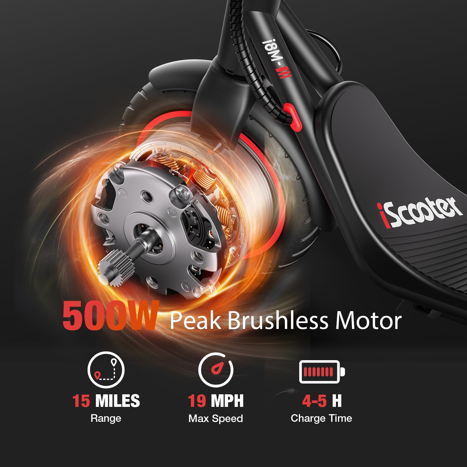 - Powerful & Efficient Ride: i8M gray scooter for adults equipped with a robust 500w peak power, the iScooter delivers a top speed of 19 MPH and supports a range of up to 15 miles per charge—perfect for your daily commute or campus cruising.