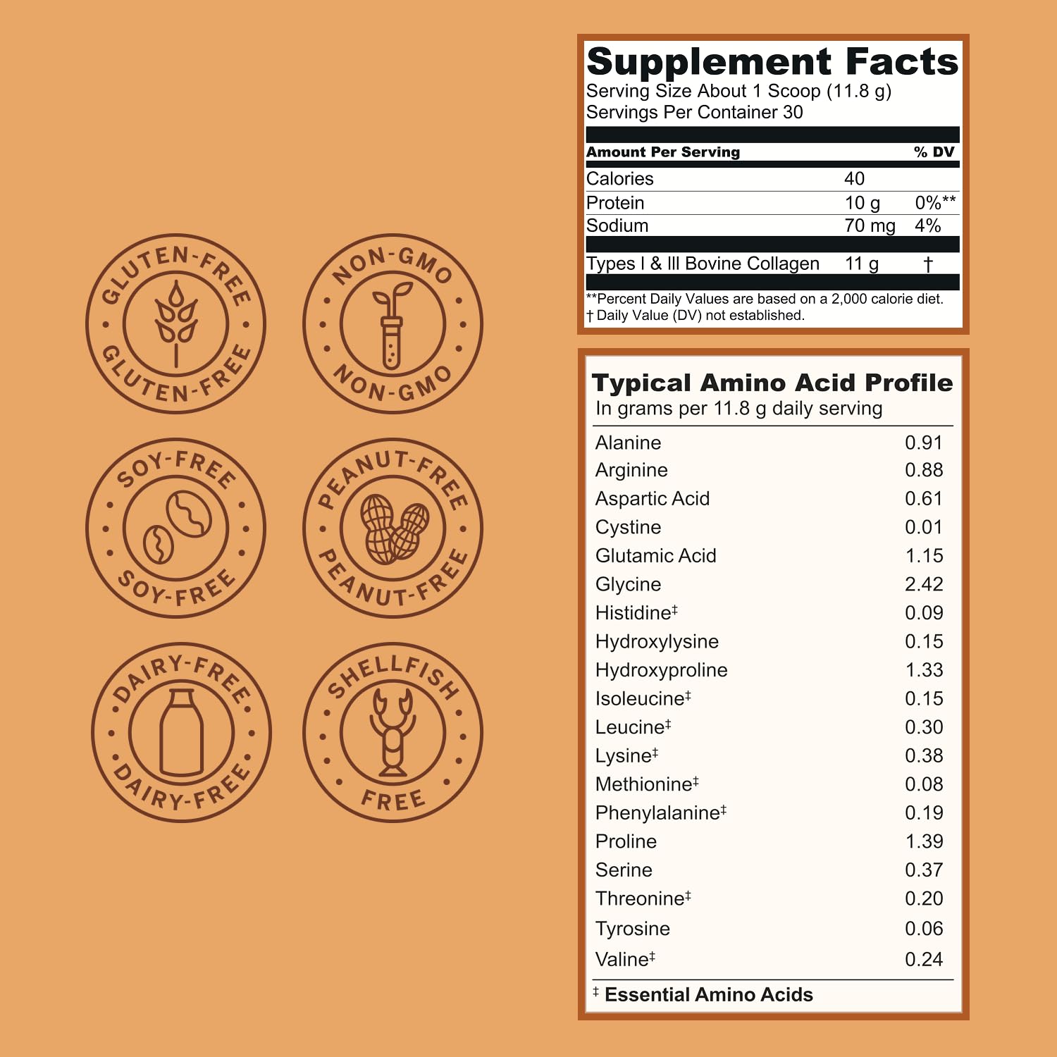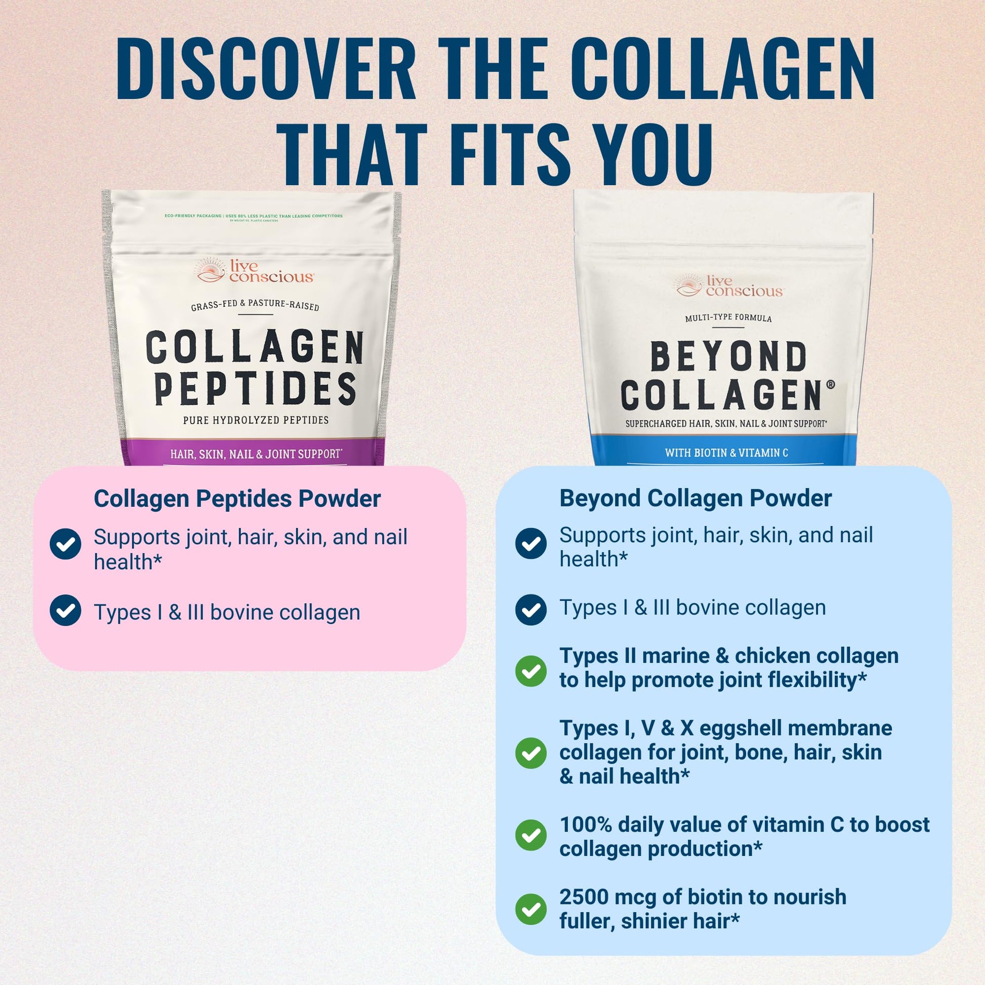 - Premium Ingredients — For the best results, you need the best ingredients. LiveConscious labs uses hydrolyzed collagen peptides from bovine sources certified as grass-fed and pasture-raised.
