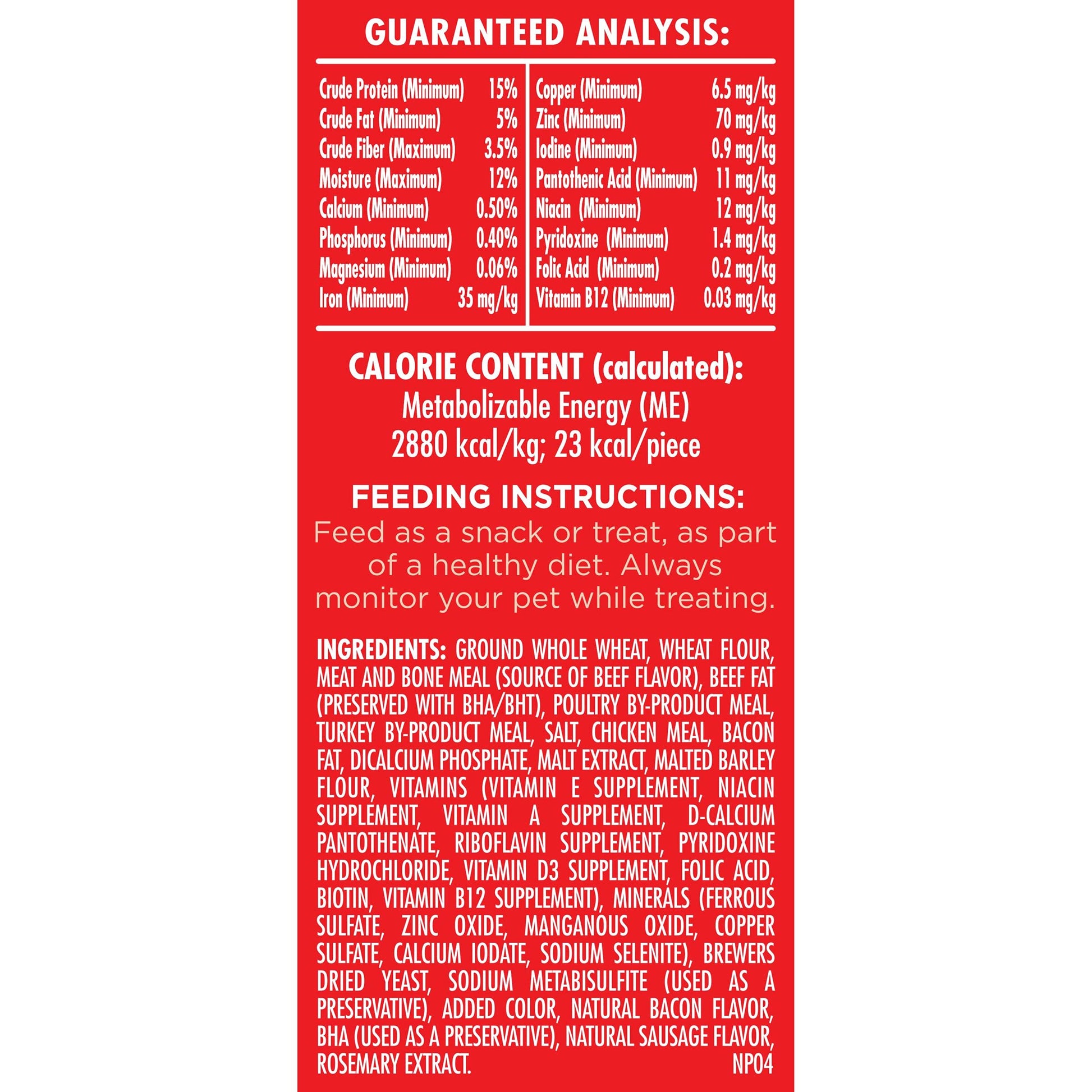 - Contains one (1) 36 ounce canister of mini dog biscuits in 3 tasty flavors: beef, chicken and bacon