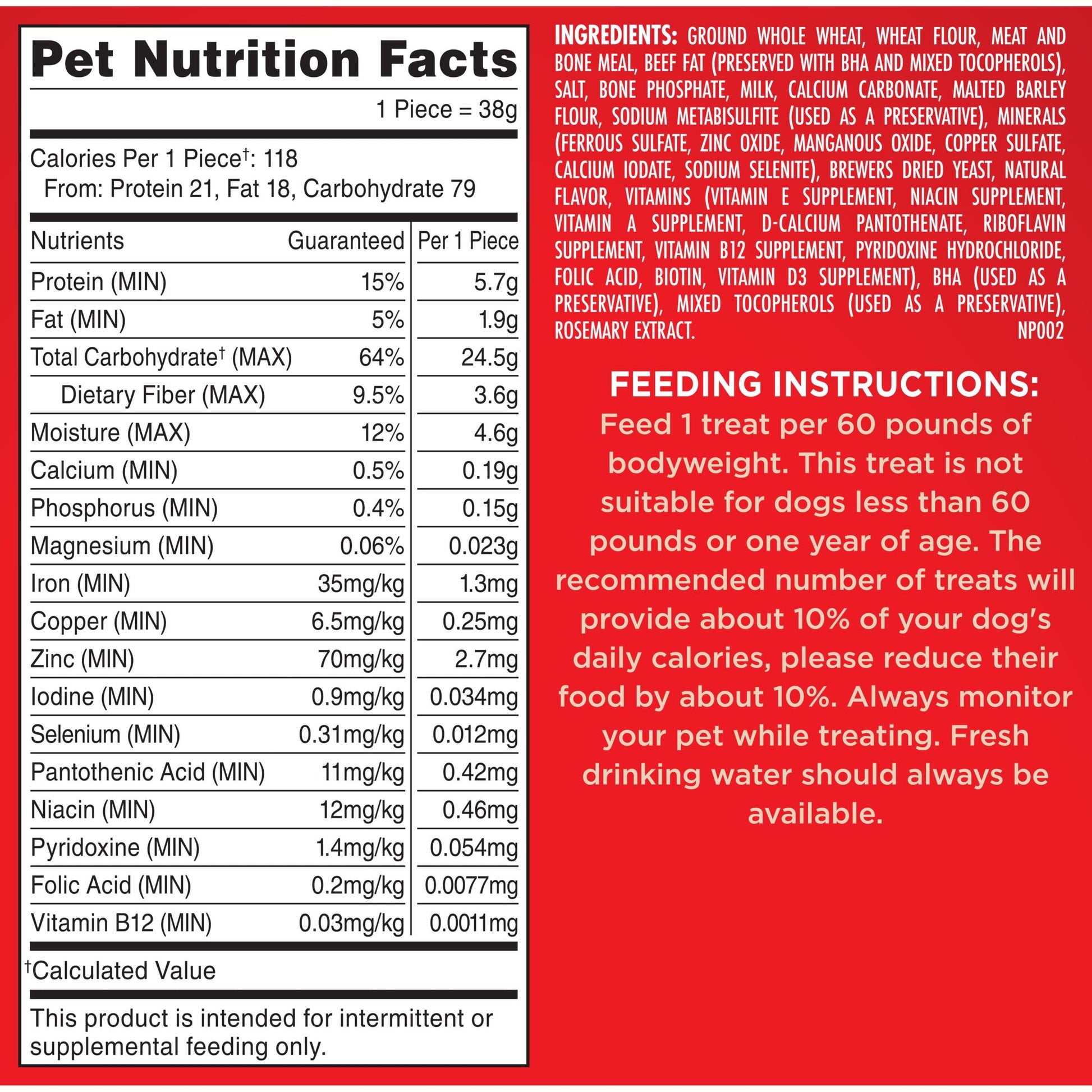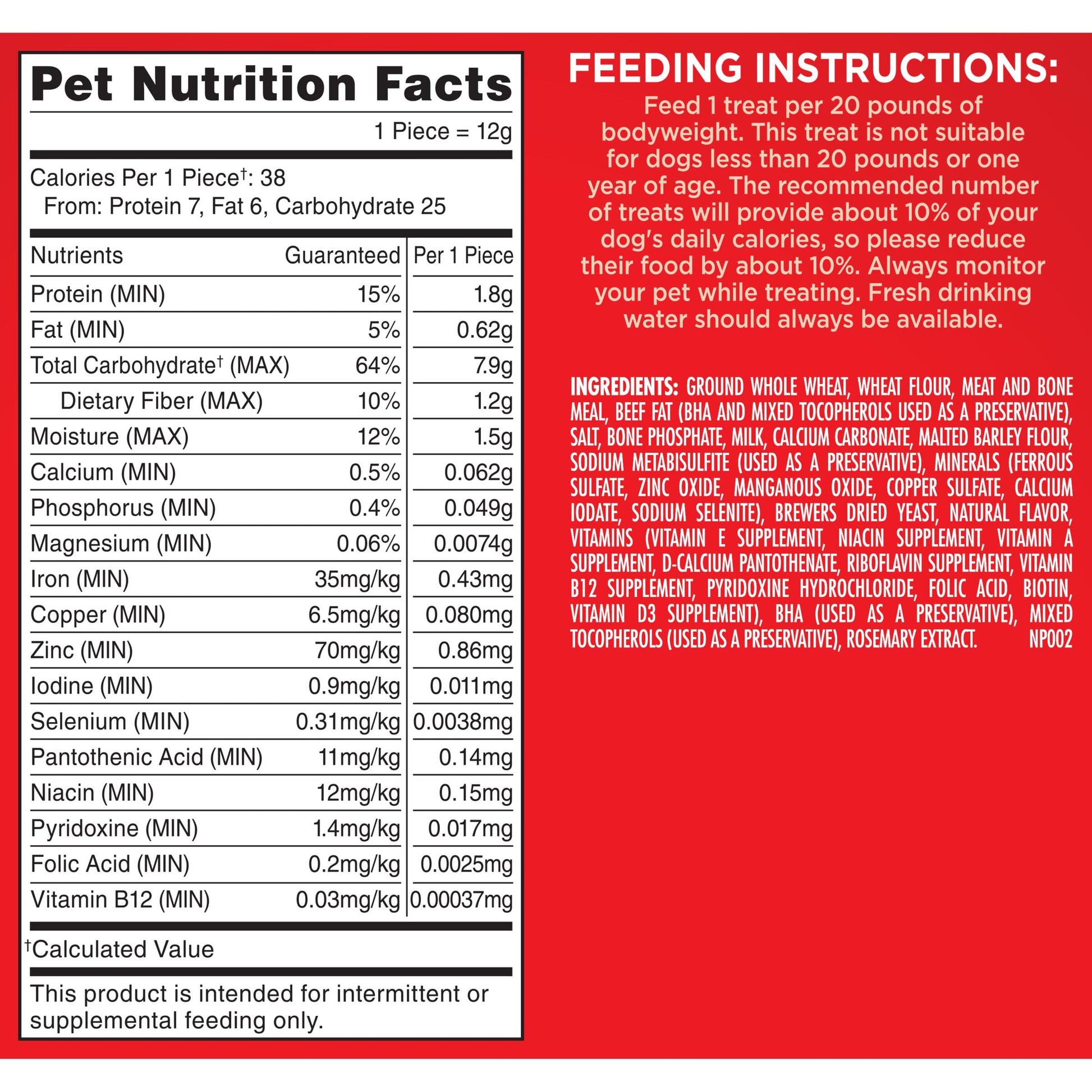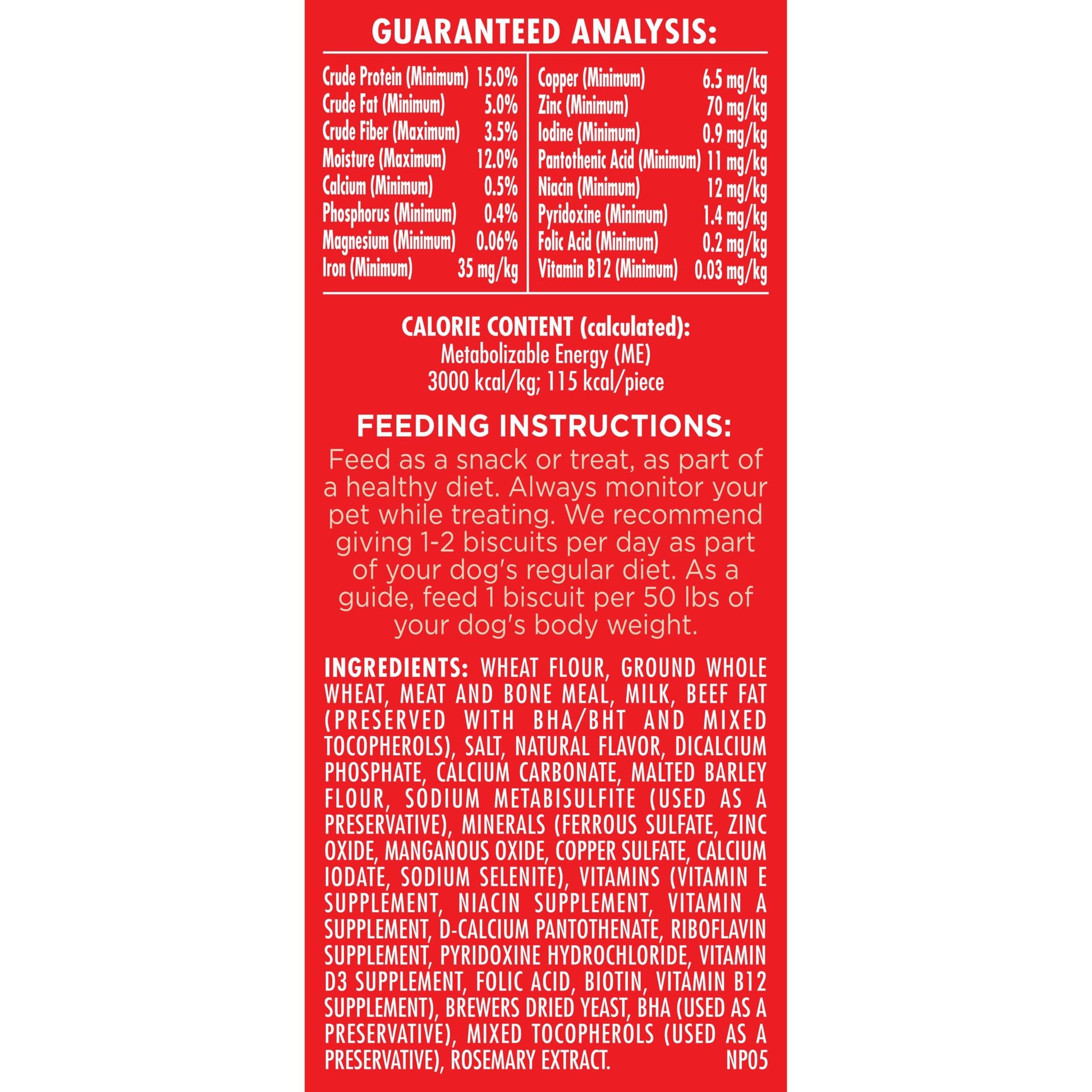 Give your dog tasty fun every day with Milk-Bone Original Dog Biscuits. These medium dog treats deliver that irresistible, classic crunch and tail-wagging meaty taste dogs can’t get enough of in every bite. But the great taste isn’t the only thing to love about these dog snacks. Their crunchy texture helps clean teeth and reduce tartar build-up to make those sloppy doggy kisses even more enjoyable. Plus, they’re made with more than 12 vitamins and minerals, and they’re produced in Buffalo, New York, USA. Add a box to your cart, and fill every day of doglife with more love (and deliciousness).