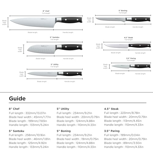 - GERMAN STAINLESS STEEL: Premium blades forged from German stainless steel are rust resistant and strong enough for all your kitchen tasks.