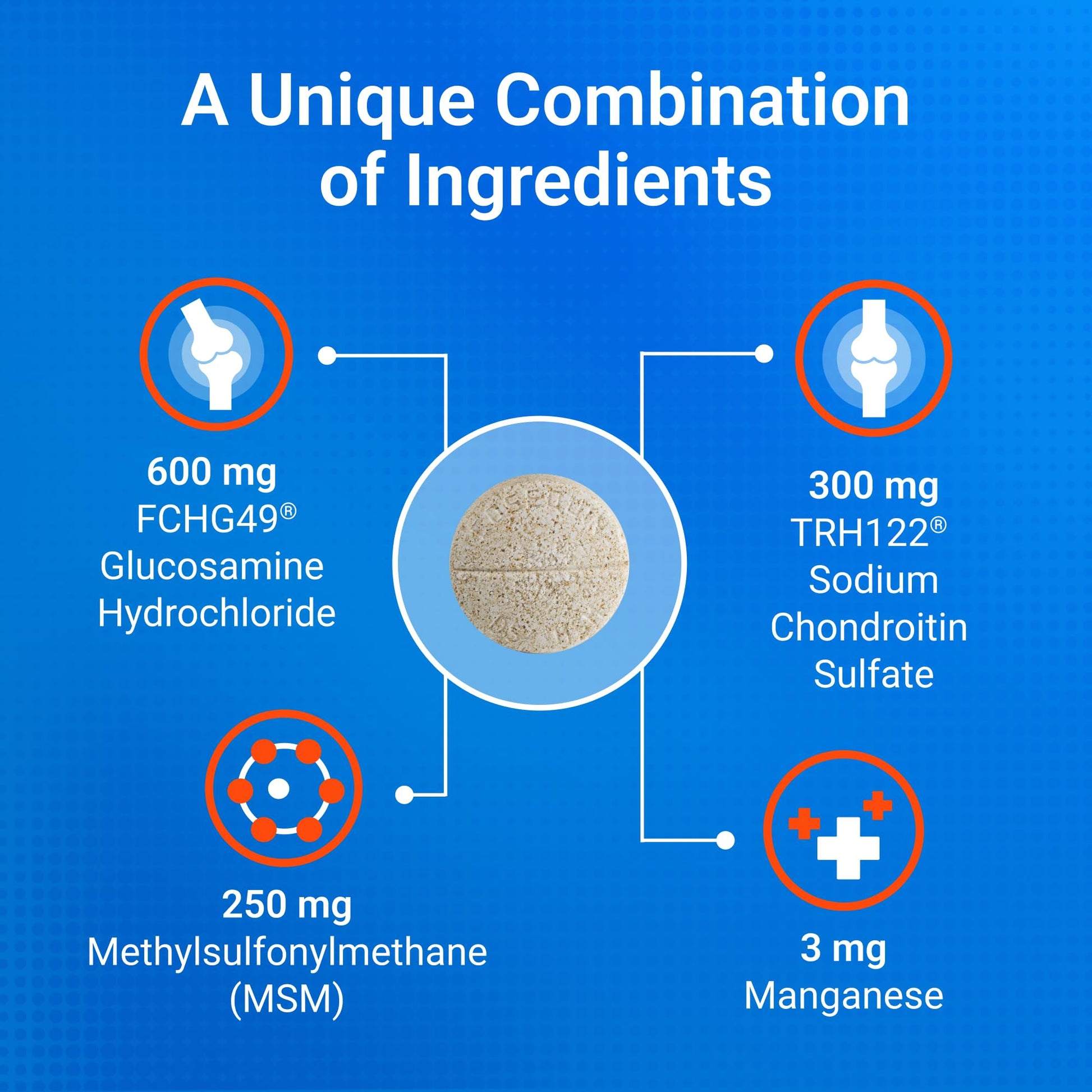 | Active Ingredients | Glucosamine Hydrochloride, Methylsulfonylmethane (MSM), Sodium Chondroitin Sulfate |
