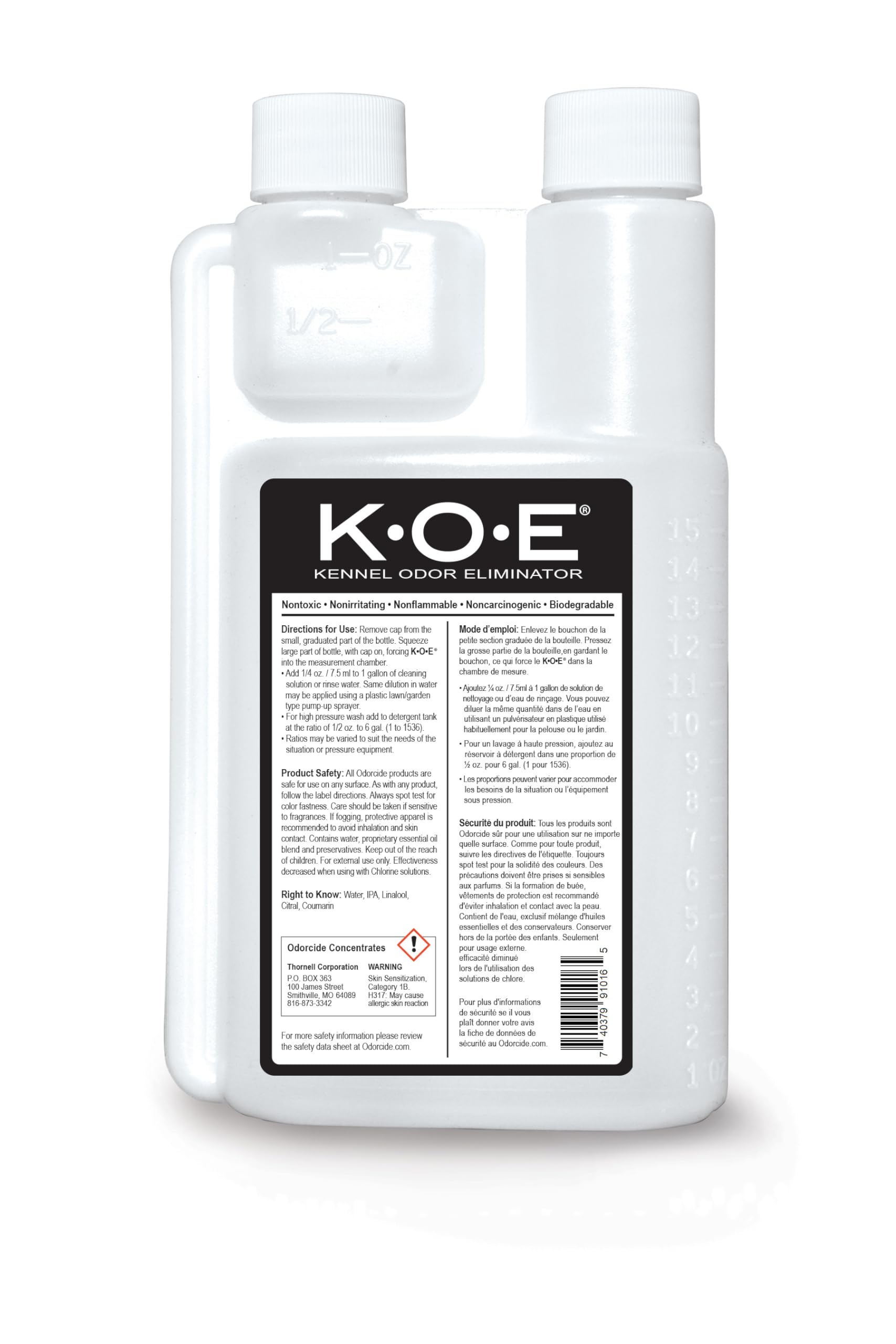 - Use What the Pros Use: Thornell is the top provider of pet smell odor eliminator products to the veterinary industry in North America. This powerful K.O.E. pet odor exterminator with a new fresh scent is designed to remove offensive odors from cages, runs, kennels, floors, tables, walls, and other large areas.