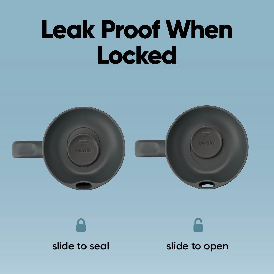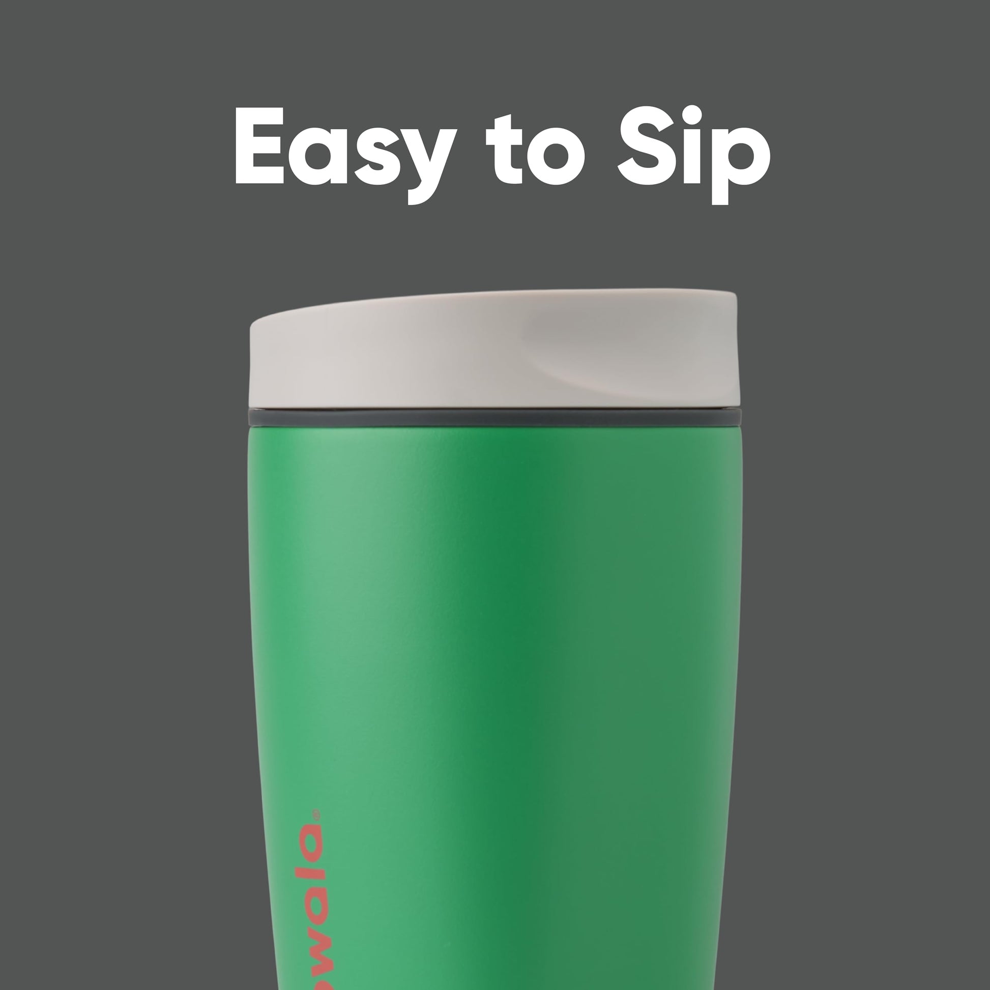 Owala SmoothSip Slider Insulated Stainless Steel Coffee Tumbler, Reusable Iced Coffee Cup, Hot Coffee Travel Mug, BPA Free 12 oz, Grey/Green (Sour Apple)