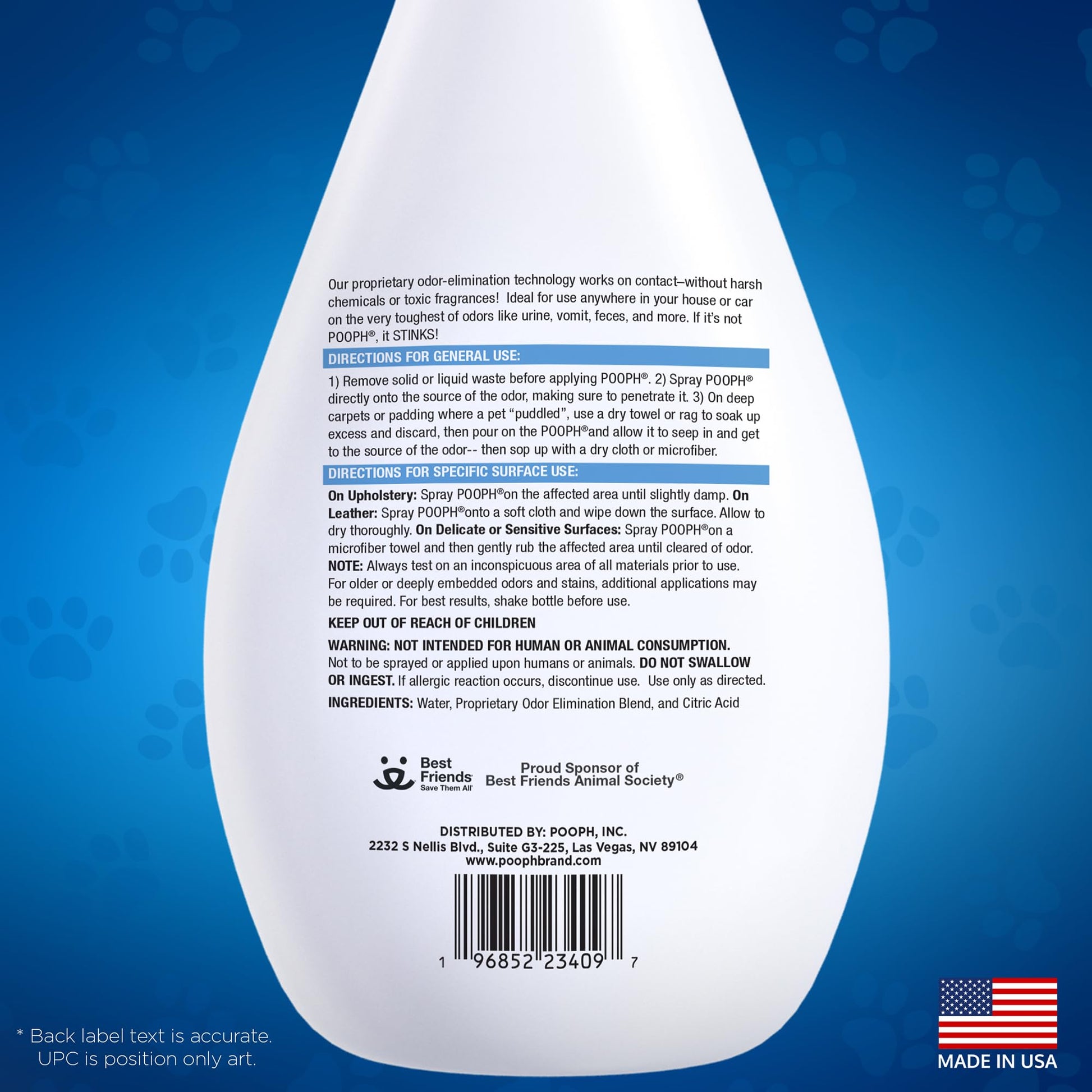 POOPH® Pet Odor Eliminator – 32 fl oz Bottle – Organic, NO Fragrances, NO Harsh Chemicals – Fast, Safe and Effective, Works On-Contact! For Home, Auto, Upholstery, Furniture – Safe for Pets & People