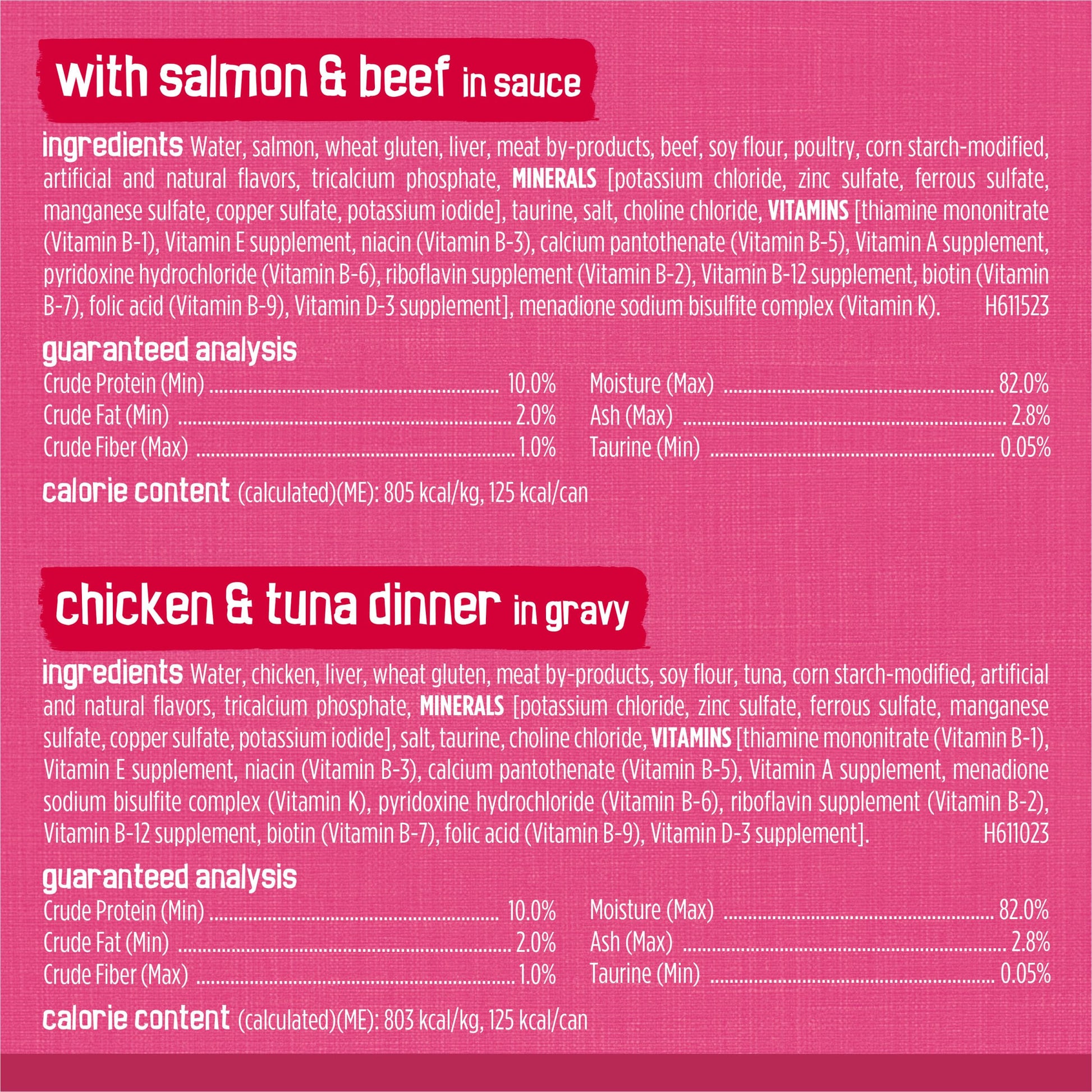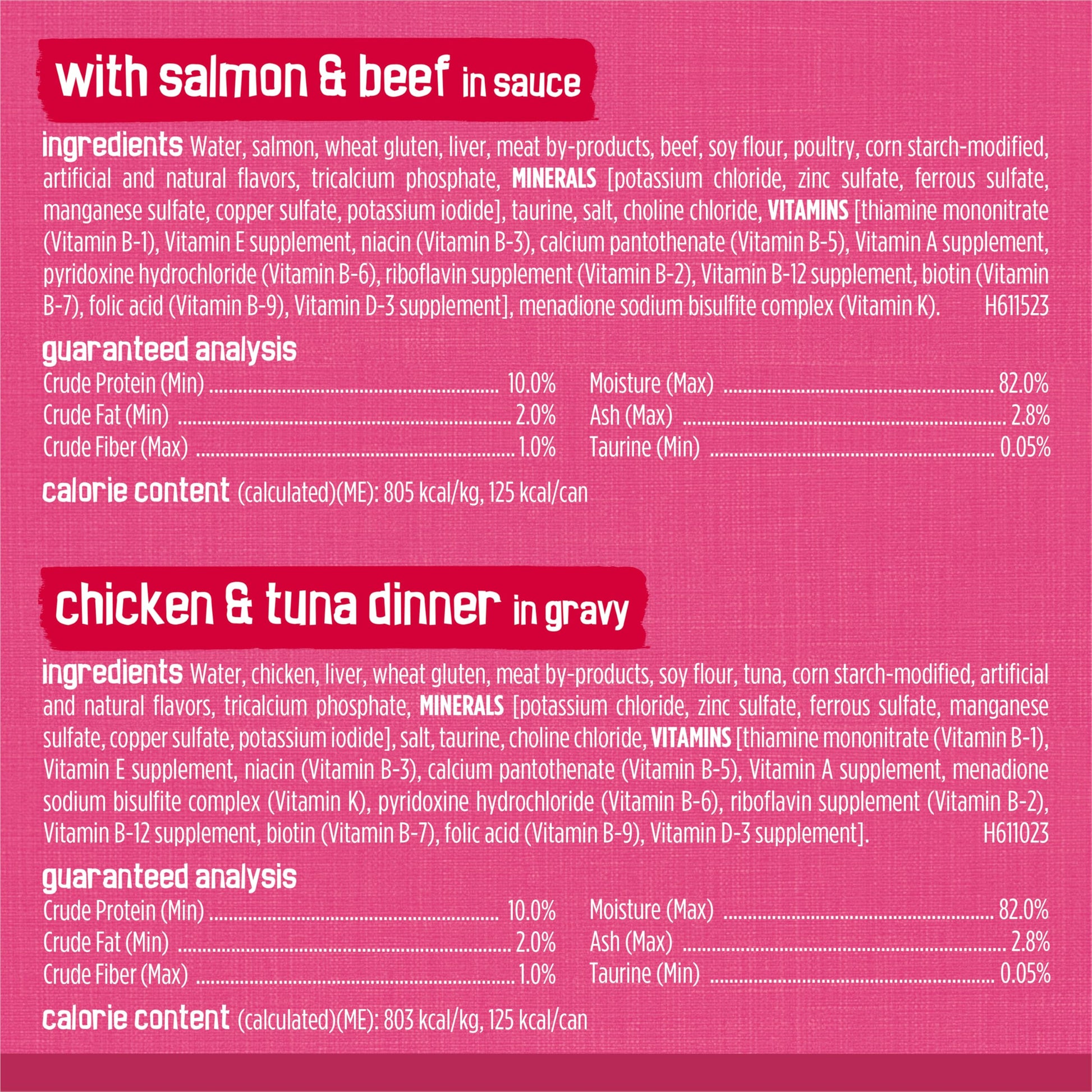 - Canned cat food variety pack formulated to meet or exceed industry standards for cat food