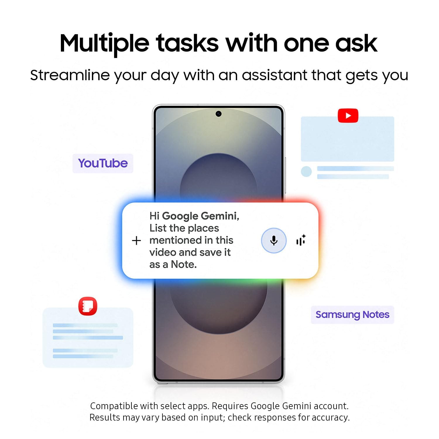 - MULTIPLE TASKS WITH ONE ASK: Streamline your day with an assistant that gets you. Ask it to Google search for a pet-friendly vegan restaurant nearby and text it to your friend— your Galaxy S25 Ultra handles multiple tasks with a single ask.¹