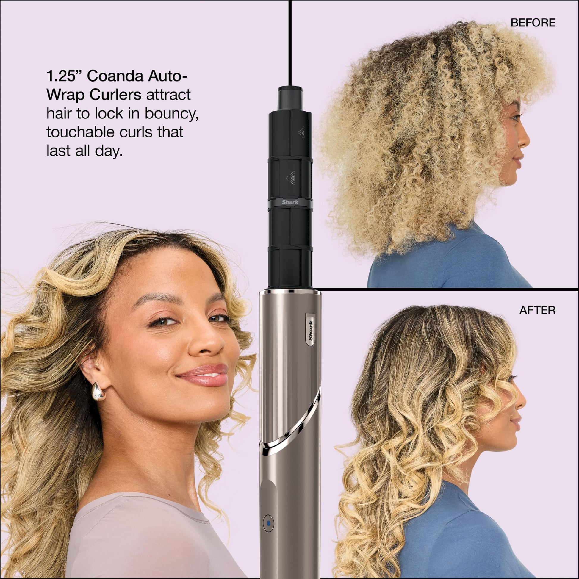 - 1.25 '' AUTO-WRAP CURLERS: Attach to the Shark FlexStyle styler. Wrap, curl and set automatically using Coanda Technology. Includes 2 curlers to curl in different directions.