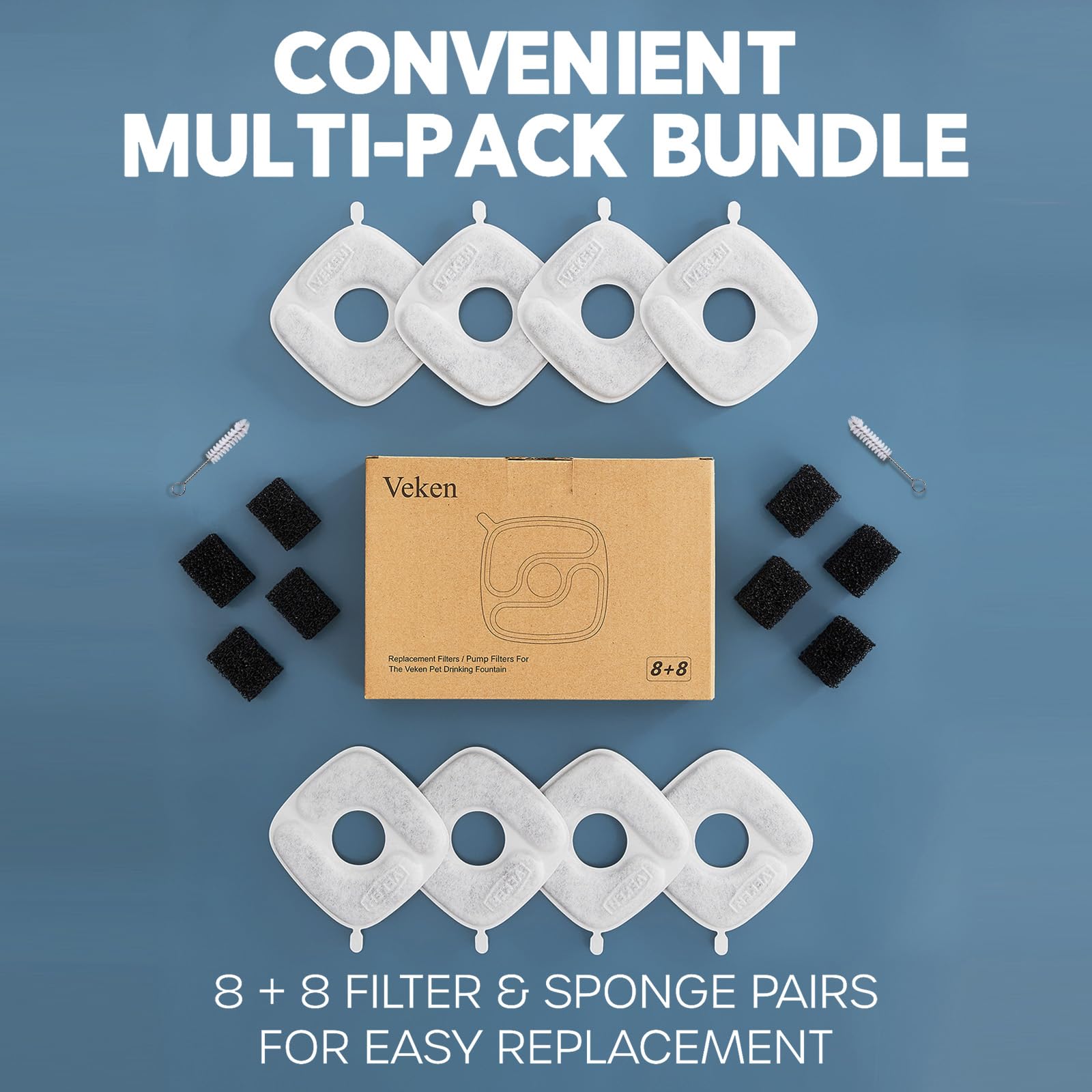 Veken Cat Water Fountain Filters, 8 Pack Replacement Filters & 8 Pack Replacement Pre-Filter Sponges Set for 50oz, 84oz, 95oz or 108oz Automatic Pet Fountain Dog Water Dispenser