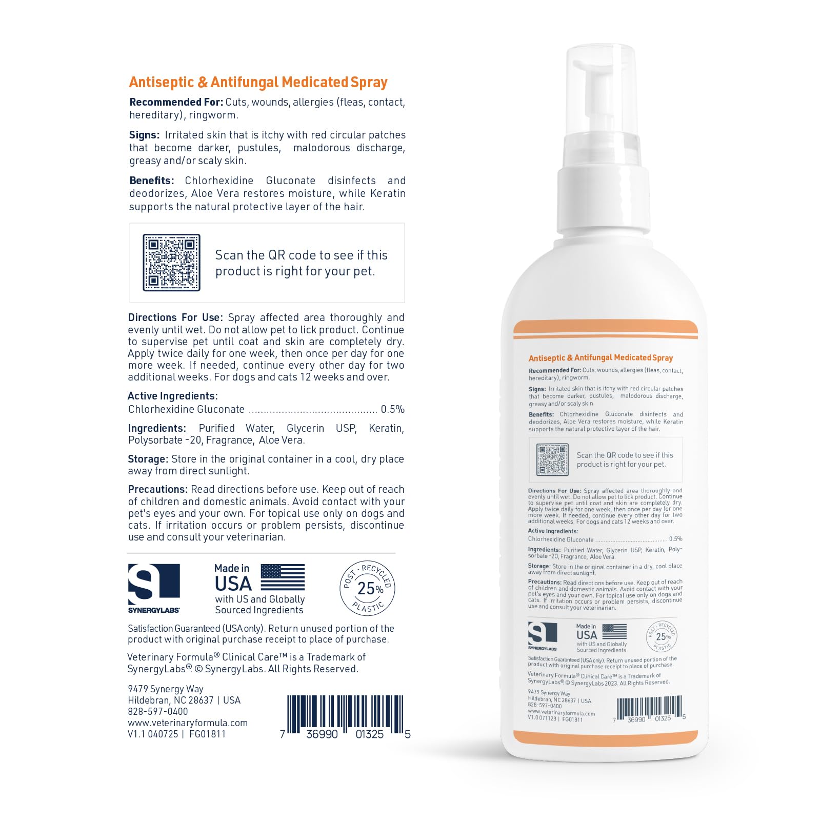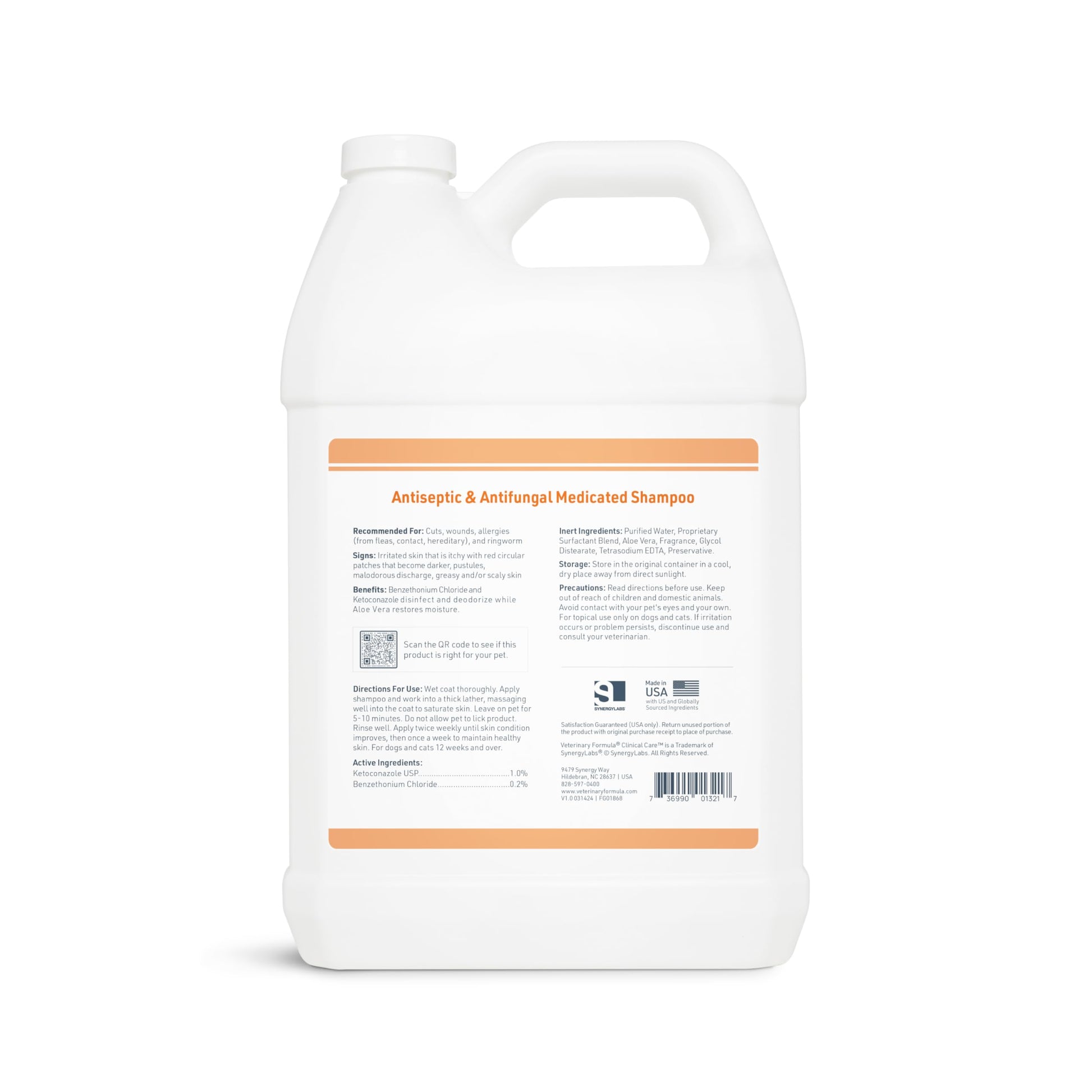 If you're searching for the best dog shampoo for sensitive skin, Veterinary Formula Clinical Care's Antiseptic and Antifungal Medicated Dog Shampoo helps bring your pet comfort. This pet shampoo is an affordable and effective solution for pets with scaly, oily, or red skin. Keep an eye out for symptoms such as itchiness, hair loss, redness, discharge from lesions, pustules, and scaly skin to determine if this pet shampoo for dogs is right for your furry friend. To maintain overall skin health, it is recommended to shampoo your pet twice a week until skin clears, then once a week for maintenance. Formulated with powerful ingredients like aloe vera for soothing properties and lanolin to restore moisture and support healthy, shiny coats, this dog shampoo for sensitive skin. Veterinary Formula Clinical Care offers premium products at affordable prices, ensuring that pet parents can provide the best care for their furry friends. Your pet will feel relief and comfort in no time, bringing joy to both of you. If skin issues persist, be sure to consult your veterinarian and try Veterinary Formula Clinical Care's best dog shampoo for sensitive skin.