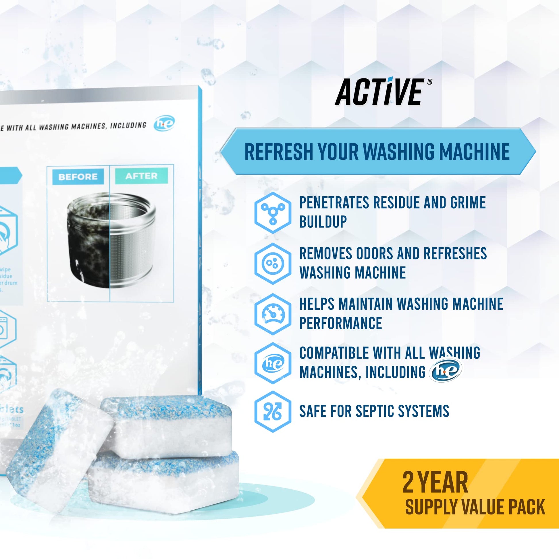 - Instant Cleaning Power - Active Self Wash Tablet Cleans So You Don't Have To Brush And Wipe Your Washing Machines. When Exposed To Water, They Break Down Into Deep Scrubbing Powder Cleaners That Breaks Down Grime And Hard Water Build Up