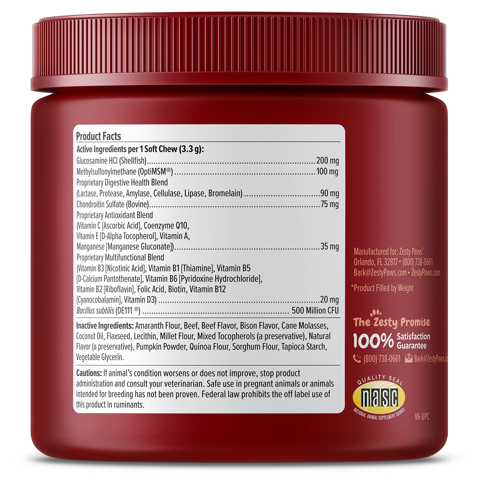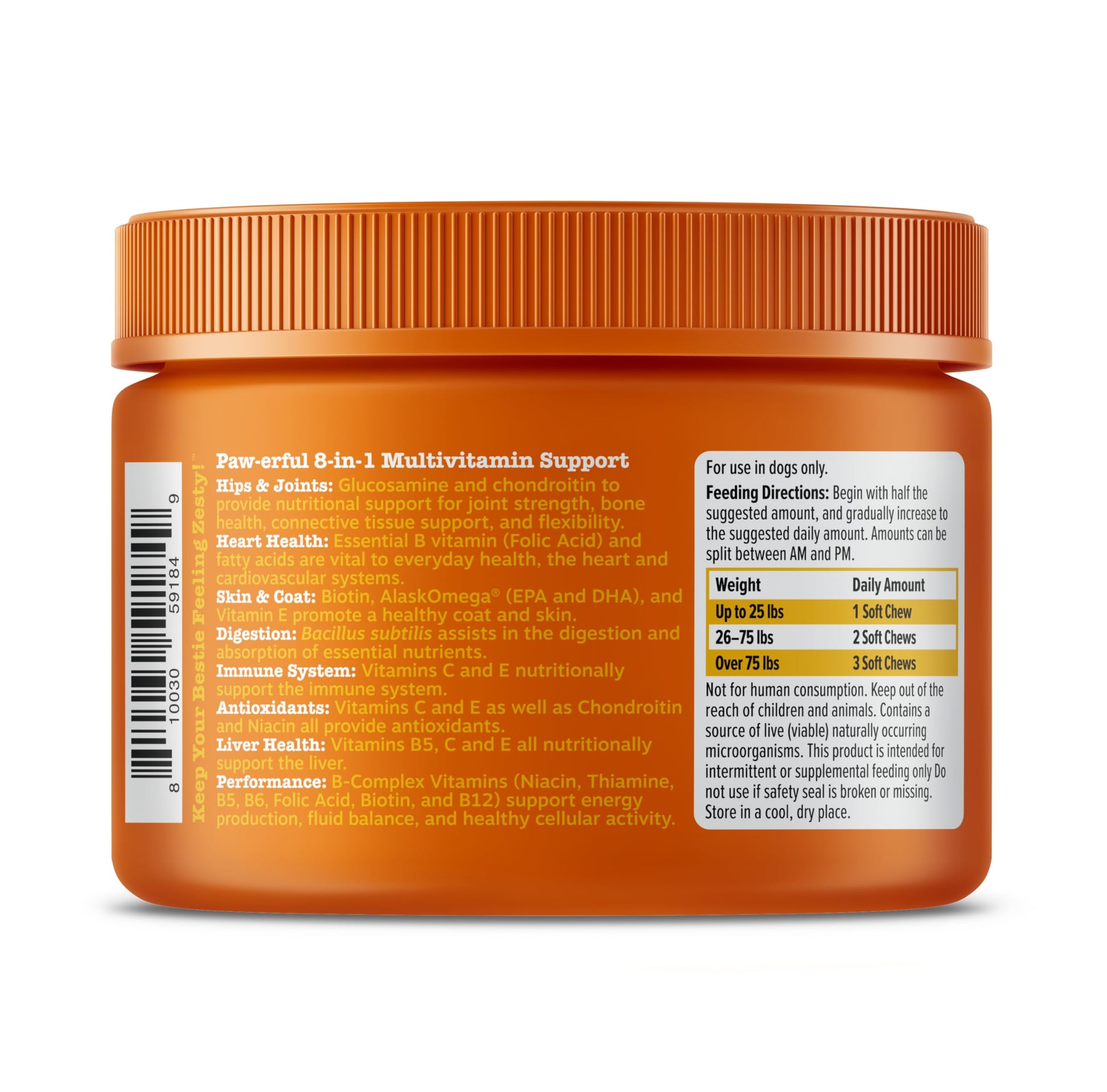 - 8-in-1 Formula - Zesty Paws Multifunctional Bites are functional supplement chews with premium ingredients that support physical performance, antioxidants, hip & joint, heart, immune, skin, liver, & gut health for dogs of all ages, breeds, and sizes.