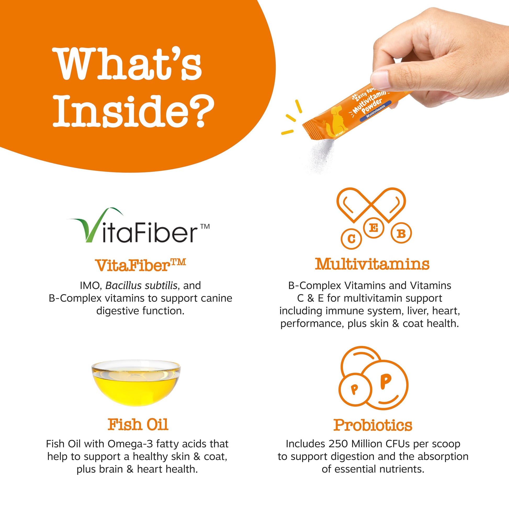- Skin Health & Antioxidants – For animals with sensitive skin, this formula contains Cod Liver Fish Oil and Vitamin E to help maintain normal moisture and CoQ10 to help reduce oxidative stress.