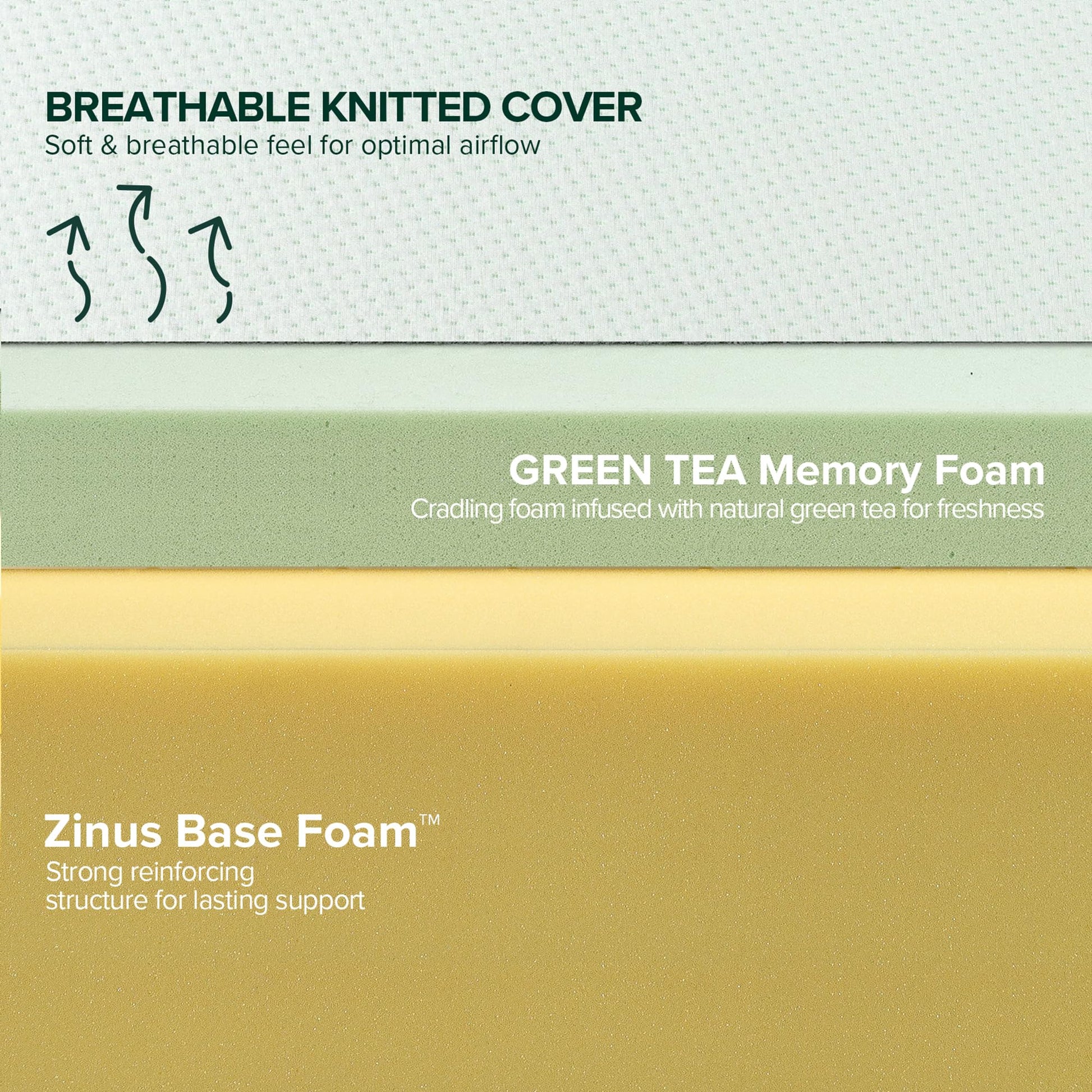 ZINUS 12 Inch King Green Tea Memory Foam Mattress [New Version], Fiberglass free, Medium Firm Feel, Zoned Pressure Relief, Certified Safe Foams & Fabric, Mattress in A Box